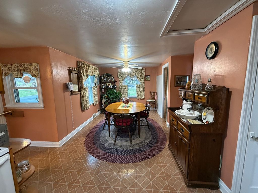 COME TO THE COUNTRY!! SPRAWLING 3 BEDROOM RANCH WITH 3 CAR GARAGE ON APX. ACRE OF LAND! PRIVATE BACK YARD WITH INCREDIBLE VIEWS OF FARMLAND FROM YOU DECK! STEP INSIDE TO SPACIOUS FRONT FAMILY ROOM- HUGE COUNTRY EAT IN KITCHEN W/STOVE, REFRIGERATOR, MICROWAVE. LARGE LIVING ROOM. NEWER WINDOWS. HUGE FRONT BEDROOM (USED AS SEWING ROOM), 2 FULL BATHS, MAIN FLOOR LAUNDRY AND 2ND HOOKUP IN BASEMENT FOR WASHER/DRYER. Extra shower in Bsmt also. MASTER SUITE ON SOUTH SIDE HOME HOSTS WALK IN CLOSET AND GREAT VIEWS OF LAND! SHED. HEATED DETACHED GARAGE...30X24. FURNACE LESS 5 YRS NEW. NEW HOT WATER HEATER. (THIS IS AN ESTATE SALE!)
