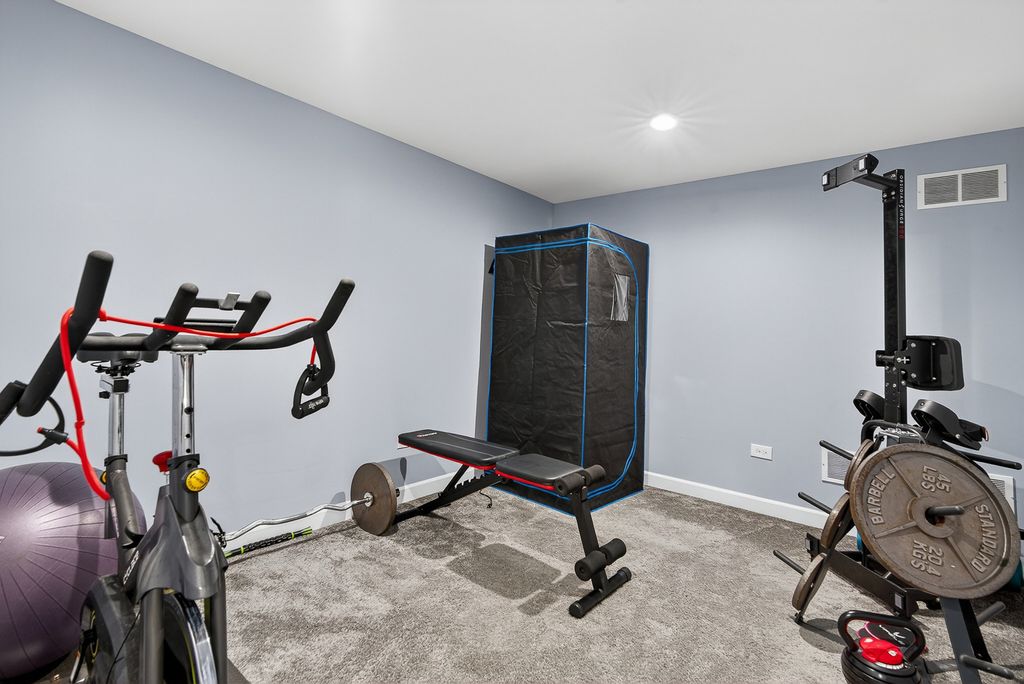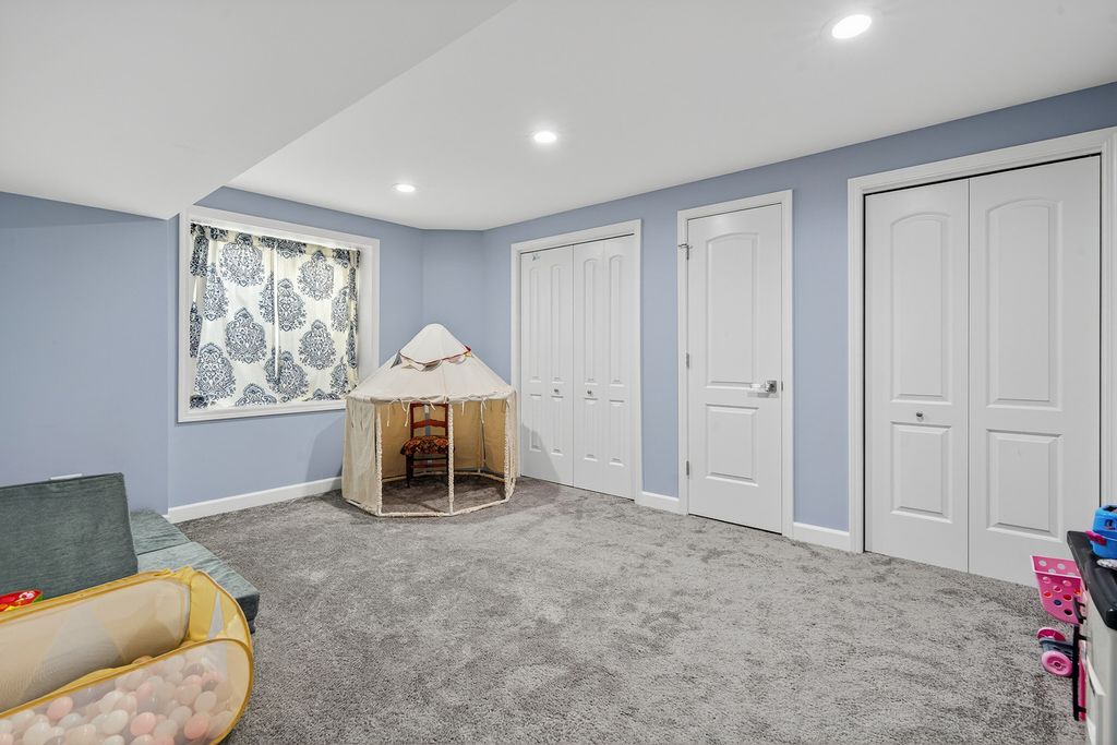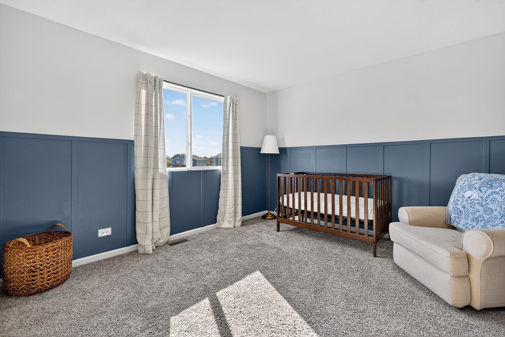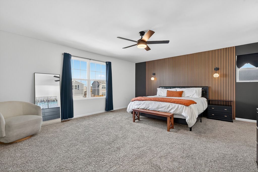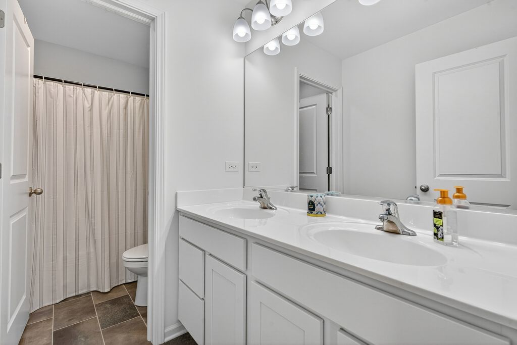 This popular Dearborn model has been upgraded to include a full finished basement and a fenced quarter-acre lot, one of the largest in the neighborhood. Enjoy the convenience of a playground within walking distance. With over 3,200 square feet of finished living space and 3.5 baths, this home offers plenty of room for comfortable living. The eat-in kitchen features white shaker cabinets, an island with a breakfast bar, stainless steel appliances, and a walk-in pantry. The bright family room with new feature wall and fireplace opens to the kitchen and overlooks the spacious fenced backyard. The newly created office space with French doors is perfect for a den, library or working from home. Upstairs includes an open loft and three bedrooms, including a large primary suite with three closets. The primary bath features a walk-in shower, double-bowl comfort-height vanity, linen closet, and a window for natural light. The professionally finished basement includes a full bath, a bedroom with two closets, a recreation room, and an office. Cambridge Lakes residents also enjoy access to community amenities, including a clubhouse, pools, ponds, fitness center, and more.