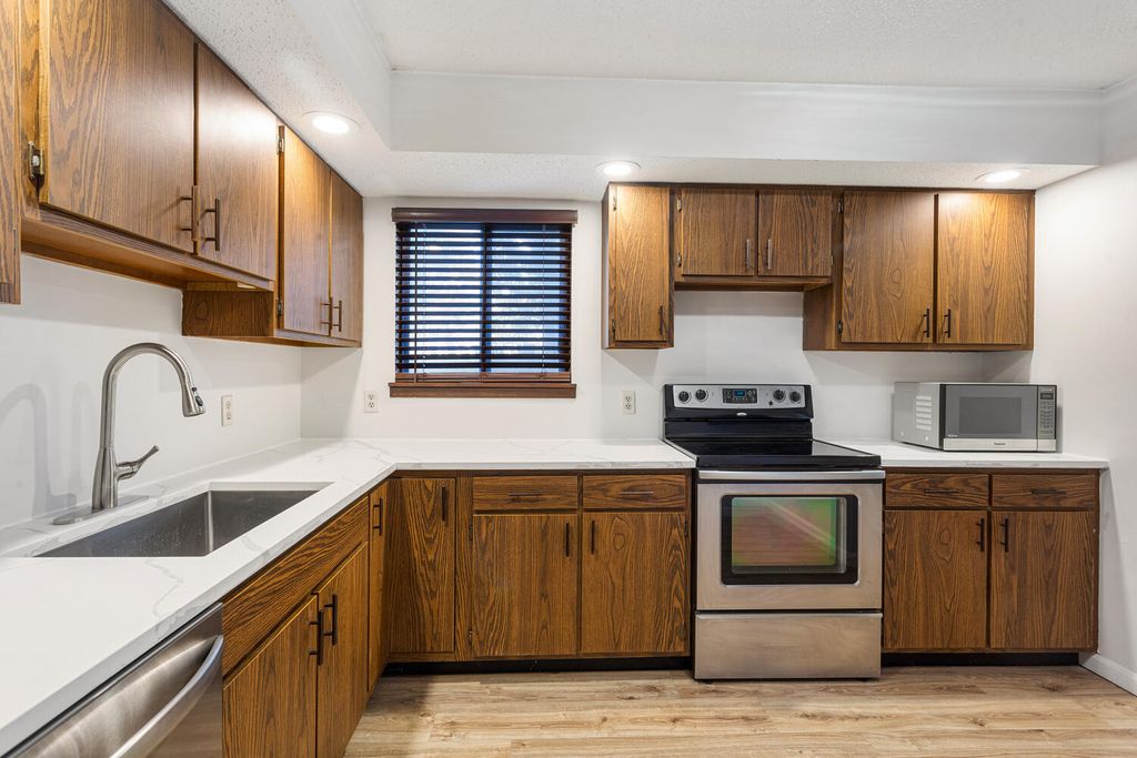 Beautifully Updated and Move-In Ready! This stunning 3-bedroom, 2.5-bath home sits on a quiet, tree-lined street just steps from scenic Heritage Park. Fresh paint and new flooring throughout give the home a bright, modern feel. The spacious main level offers an open-concept great room, updated kitchen, convenient laundry room, and half bath. The kitchen features new stone countertops, a large undermount sink, and stainless steel appliances. The living room includes an upgraded Pella sliding glass door leading to a brand-new wood deck-perfect for entertaining or relaxing in the private, tree-shaded backyard. Upstairs, you'll find three large bedrooms, two full baths, and plenty of storage, including three hallway closets. The primary suite offers a private bath with a walk-in shower and new glass door. A large attached two-car garage with a built-in workbench adds convenience and functionality. No HOA and updates galore!
