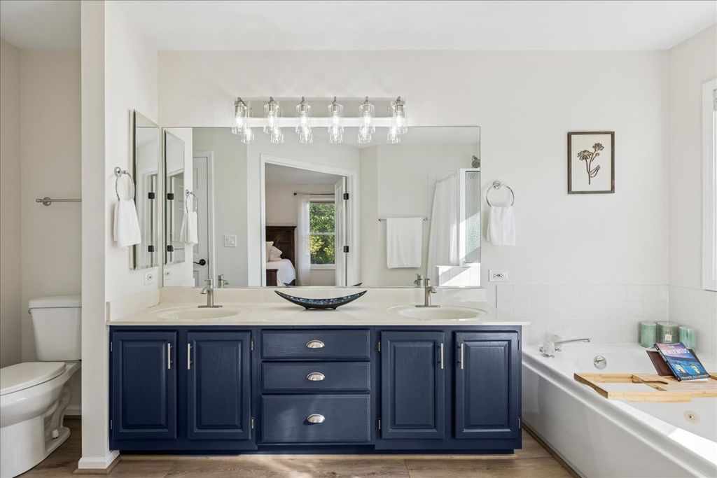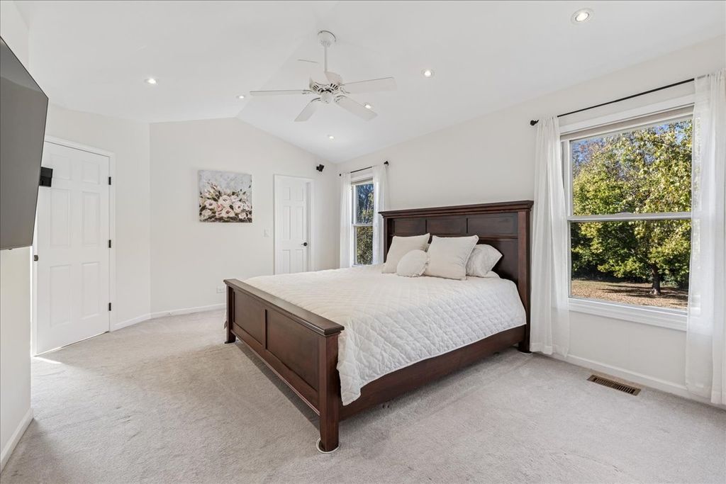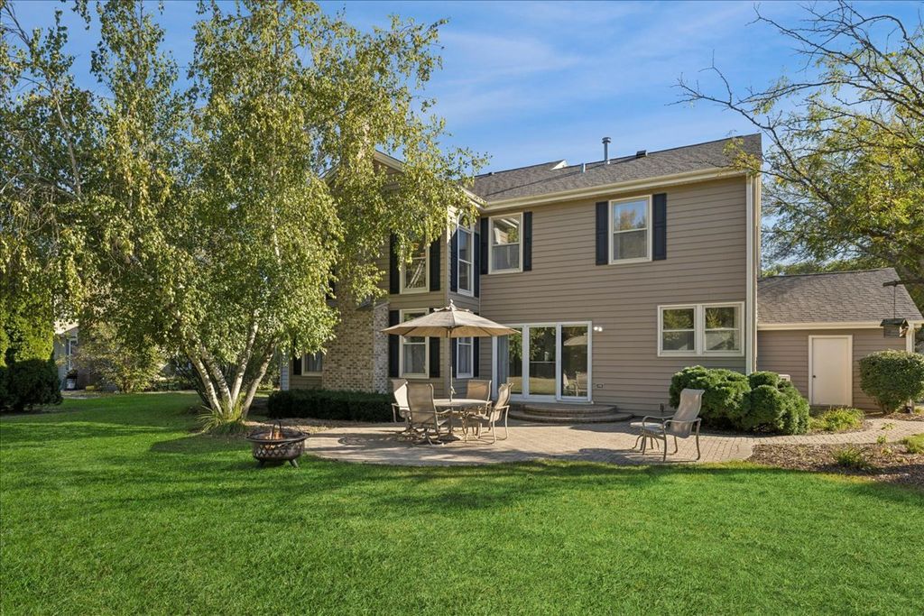 Tucked within the highly sought-after Woodscreek community, this beautifully updated home is filled with light, style, and comfort. From the moment you step into the two-story foyer, the open, airy design sets the tone for everything that follows. The main level unfolds with a welcoming living room, a formal dining room, and a quiet home office. At the heart of the home, the family room makes a lasting impression with its soaring ceilings, oversized windows, and a dramatic floor-to-ceiling brick fireplace. Bathed in sunlight, it's a space designed for gathering, relaxing, and enjoying the warmth of a perfect home. Just beyond, the brand-new kitchen is a true highlight. Crisp white cabinetry pairs with quartz countertops and stainless steel appliances, while a central island and pantry add both function and style. A cheerful eating area, framed by sliding glass doors, opens to the backyard and makes casual dining feel effortless. Upstairs, the primary suite offers a private retreat with vaulted ceilings, recessed lighting, large windows, walk-in closet, and a spa-like bath with dual vanities, whirlpool tub, and separate shower. Three additional bedrooms, each generously sized with walk-in closets, share a beautifully updated hall bath. The lower level features a wide-open unfinished basement-ideal for a gym, media room, play space, you name it. Completing this home is a large, 3-car garage. Outdoors, a newer brick patio and walkways invite you to enjoy the tree-lined, half-acre lot. Whether it's hosting summer barbecues, unwinding in the evening, or simply enjoying the changing seasons, this backyard creates the perfect escape. Recent updates in 2025 include new kitchen cabinets and countertops, luxury vinyl flooring, lighting/plumbing fixtures, fresh paint throughout, updated bath vanities, and a new hot water heater. Ideally located near endless shopping, dining, entertainment, golf, and parks. This DREAM home won't last long!