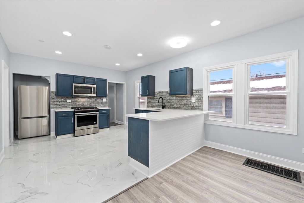 HOME FOR THE HOLIDAYS! You deserve the best, & this FULLY REMODELED 4 bedroom 2 bath Cape Cod with full unfinished basement fits the bill! EVERYTHING IS NEW! This gorgeous rehab has a fantastic open concept layout, with 2 bedrooms & full bath on the main floor, and 2 more bedrooms & full second bath w/ custom tile shower upstairs! Upstairs also features a cozy den/family room, PLUS a tandem bonus/office space! Cook like a gourmet chef in your fully updated kitchen featuring QUARTZ counters w/ bar top seating, STAINLESS appliances, porcelain flooring & trendy tile backsplash. BRAND NEW BATHROOMS (one on each level); space saving pocket door in the process of being installed in the upstairs bath. The focal point of the living room is the modern electric fireplace that changes color with the click of a button. NEW furnace, NEW water heater, & brand new AC being installed prior to closing (when weather allows). New vinyl clad WINDOWS throughout! Plenty of storage with a FULL UNFINISHED BASEMENT, & tons of parking with a 2 car detached garage off the alley as well as street parking in front. Great curb appeal with new covered front porch & fresh landscaping in front, and a paver patio with built in firepit in back. Make 2026 your best year yet & schedule a showing today!
