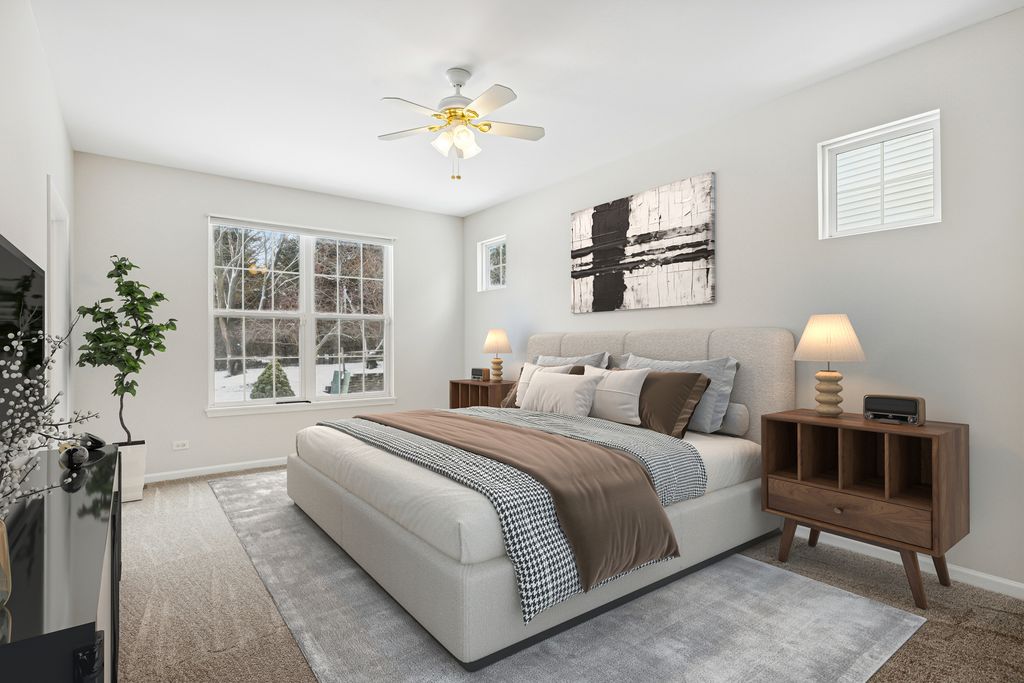 REFRESHED AND READY TO IMPRESS! This lovely home is situated on the largest lot in Carillon North and backs to a beautiful tree line, offering added privacy and serenity. The inviting layout features soaring ceilings and abundant natural light, along with a main-floor primary suite and a convenient laundry room for effortless first-floor living in a two-story home. Enjoy the light-filled four-season sunroom and a newly replaced deck. Upstairs, a sprawling loft offers flexible living space in addition to the two additional bedrooms, while the finished basement adds even more versatility with a 4th bedroom/office, full bath, and generous recreation area and large storage room. Located within the active, gated 55+ Carillon North community, residents enjoy a beautifully maintained setting with amenities such as a conveniently located clubhouse (just a short walk from this home), golf course, indoor pool, fitness center, walking trails, various social activities and more! Combining comfort, space, and community, this home truly offers the best of resort-like living while close to shopping and within an easy 10 minutes to I-94. Many areas just refreshed with new carpet and fresh paint, including finished full basement.