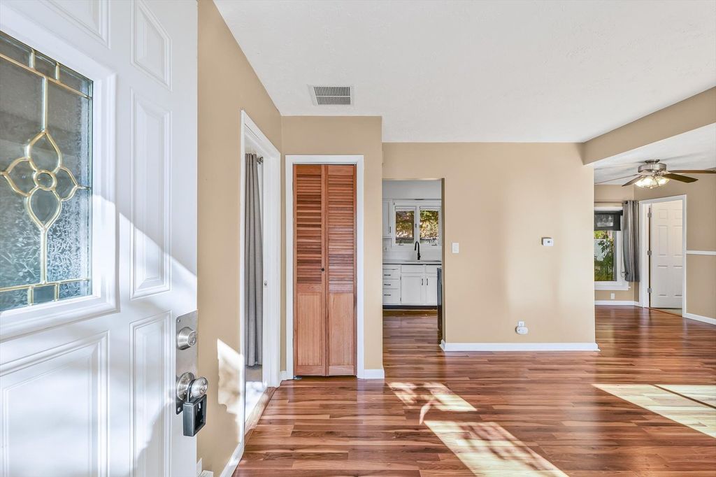 Welcome home to this inviting and well-cared-for property that blends comfort, functionality, and thoughtful updates throughout. The front yard greets you with lovely landscaping and a mature cherry tree-perfect for spring blooms and curb appeal. Step inside to find a bright, open layout with recent upgrades that make this home truly move-in ready. The kitchen shines with 2025 renovations, featuring new quartz countertops, a stylish backsplash, a new refrigerator and sink, new oven with air fryer feature, and modern finishes throughout. The bathroom has also been refreshed with a new door, fresh paint, and updated shelving. Both bedrooms feature sealed subfloors and brand-new hypoallergenic carpeting, along with new doors and hardware, ensuring a clean and comfortable retreat. A brand new storm door was also recently added. Outside, enjoy the fully fenced yard, ideal for pets, play, or relaxing evenings. The spacious two-car garage offers excellent storage and built-in cabinets for organization.