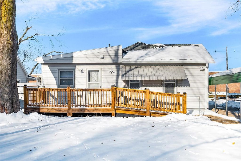 Welcome to this charming ranch style home that has been in the same family over 70 years. It features 3 bedrooms, 2 full bathrooms, a generous living room, separate dining room, and a large eat-in updated kitchen. In addition, there is a bonus room with a large picture window bringing in much natural light that is perfect as a sun room, or could be an office or a playroom, and this home has a convenient mud room off the side door. Updates in the fall of 2025 will give peace of mind for years to come - new roof on house with 6" gutters, new roof on detached garage with 5" gutters, a 90 high efficient hot water heater, a new electrical panel with circuit breakers, new luxury vinyl flooring throughout. Kitchen has been beautifully updated with cabinets and countertops, along with an island with storage and seating. The interior has been freshly painted, along with beautiful ceiling accents in the living room giving this room a stunning effect! Two full bathrooms, one with a corner jacuzzi to relax in after a long day! Exterior vinyl siding for low maintenance. Concrete driveway replaced in 2013, plus a carport for a second vehicle to protect from the weather. Additional parking is available behind the garage off of the alley. A 90 high efficient gas furnace was installed in October 2019. All windows were previously updated. Enjoy the back deck for morning coffee/tea or cookouts. Deck has a ramp off of it, and overlooks a large backyard. Additional parking behind the garage with paved alley access. The 18.7 acre O'Neil Park with new Aquatics Center is just down the street, and Sheridan Elementary School is across the street. Basement is unfinished, but a great place for additional storage. All appliances stay including washer and dryer which is located on the main floor. This home shows like new as it has so many updates! Home is in an estate, and therefore is sold as is. Home has passed a foundation review by Sego inspections. Don't miss this home!