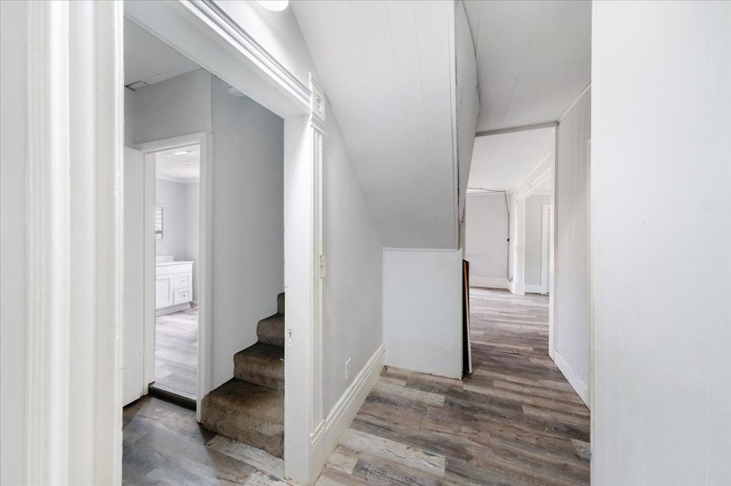 Charming home positioned on a desirable corner lot in Monticello. The main level offers a spacious living room, a dedicated dining area, and a convenient first-floor bedroom alongside a full bathroom. The upper level includes an additional bedroom, as well as two bonus rooms that can serve as bedrooms, office space, hobby rooms, or additional storage (rooms do not have closets). Enjoy outdoor living on the large deck overlooking a beautifully landscaped yard featuring mature trees and a garden shed for added utility. Property is being sold AS-IS, presenting a great opportunity for buyers to update and build equity.