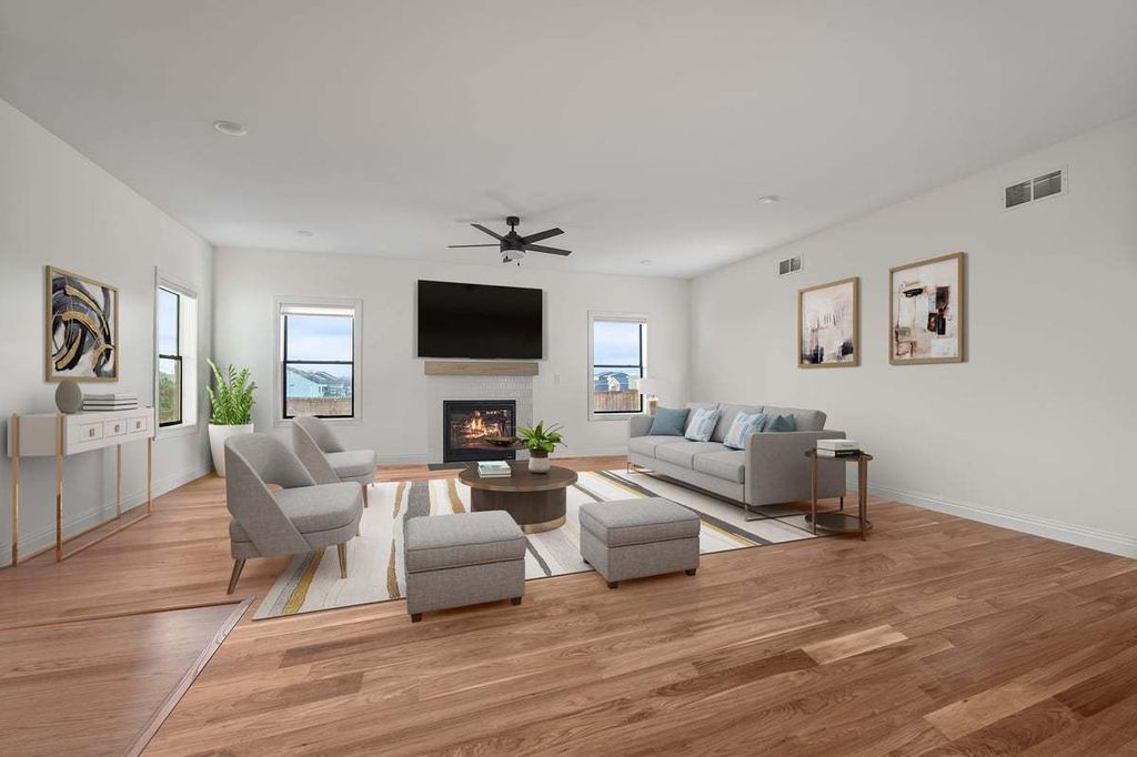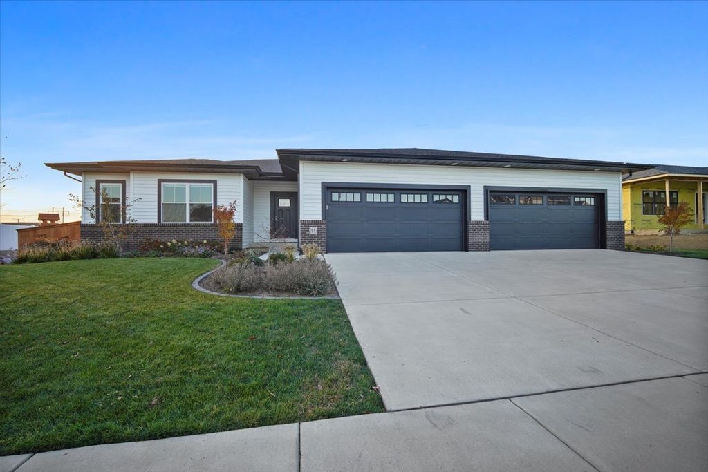*WOW*BETTER THAN NEW! This stunning contemporary ranch offers over $140,000 in upgrades and more than *2,000* square feet on the main floor. The owners have spared no expense-enhancing the property with professional landscaping, a full irrigation system, and a premium privacy fence. Inside, builder-grade LVP flooring has been replaced with beautiful natural engineered hardwoods, complemented by fresh, warm paint tones that create an inviting atmosphere. The open-concept floor plan features a spacious living area with a gas fireplace, dining space, and a large kitchen with a massive square island, abundant cabinetry, and a generous pantry closet. High-end Cafe appliances in striking rose gold finishes elevate the space with both style and sophistication. A large laundry/mud room adds function and convenience. Generously sized bedrooms include a luxurious primary suite with a stylish bath featuring elegant gray vanities. The split floor plan provides privacy and flexibility, perfect for today's lifestyles. Step outside to an amazing covered porch-ideal for entertaining or relaxing in any weather. Thoughtfully built with 2x6 exterior construction, LED puck lighting for superior energy efficiency and illumination, USB port plugs throughout, a Wi-Fi programmable thermostat, and a high-efficiency HVAC system. Additional highlights include MyQ garage door remote access via smartphone, an electric car outlet, and a rare FOUR-car garage-an exceptional find in Bloomington-Normal. If you've been searching for an expansive, move-in-ready ranch with modern design and luxury finishes, this is it!