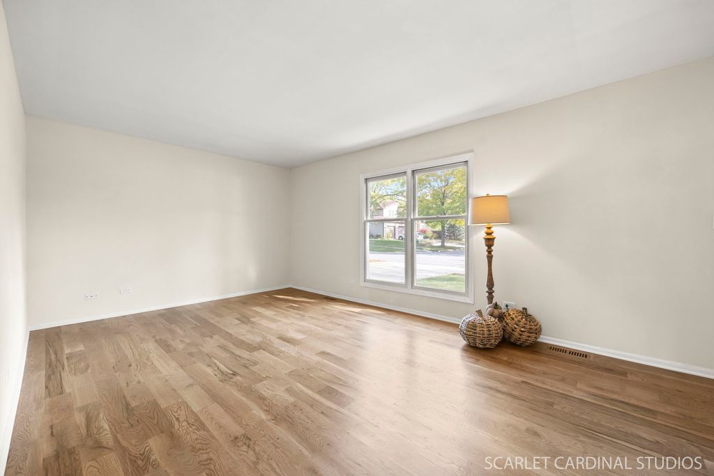 Completely Updated Turn-Key Cape Cod in Peaceful Tree-lined Neighborhood! Welcome home to this beautifully renovated 4 bedroom, 2 full bath Cape Cod nestled on a quiet, mature, tree-lined street. Thoughtfully updated from top to bottom, this move-in ready gem blends timeless charm with modern style and everyday convenience. Step inside to discover stunning 5-inch solid white oak hardwood floors that flow throughout, complemented by a soft neutral color palette and crisp white trim. The updated kitchen features warm Medallion hickory cabinetry, elegant quartz countertops with tiled backsplash, a farmhouse sink, high-arc faucet, stainless appliances (including new range and microwave hood) and sliding glass doors leading to an expansive deck- perfect for effortless indoor/outdoor entertaining. Both full bathrooms have been tastefully renovated with stylish finishes. The main level offers two bedrooms with generous closets, a full bathroom and convenient main-floor laundry-ideal for one level living or a multigenerational lifestyle. Upstairs, you will find two additional bedrooms with charming coved ceilings and a beautifully updated full bathroom. Additional highlights include a new roof (2025), all new windows (2025) in bedrooms, bathroom and basement, new lighting throughout and freshly painted interior. A deep 2 car garage with a workbench and direct access to the fully fenced backyard adds functionality and space for hobbies or storage. The wide driveway provides ample parking. The spacious unfinished full basement awaits your design ideas- perfect for future living space or organized storage. Ideally located just minutes from Metra, I-390 highway Hanover Park Community Center and Laurel Hill Elementary School. Convenient to many major retail stores as well. This turn-key Cape Cod offers the perfect blend of character, quality and flexibility-- Ready for you to move right in and enjoy! Taxes do not reflect homeowner exemption.