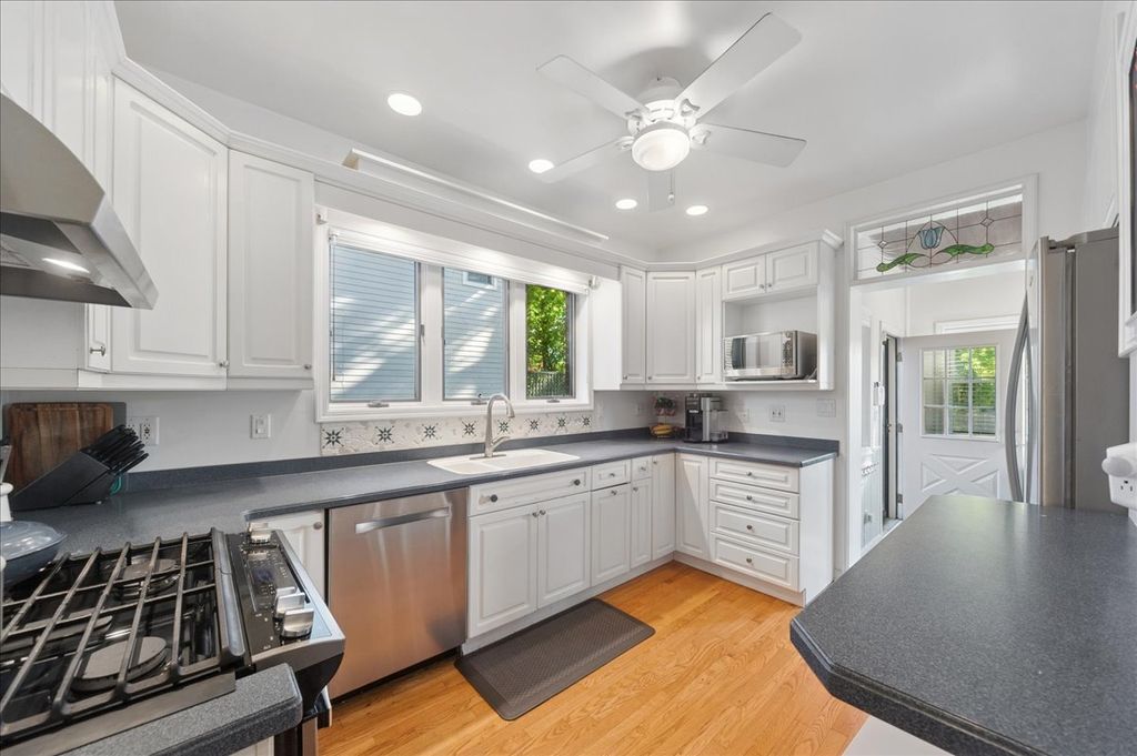 Timeless and endearing Chicago-style bungalow, in the heart of revitalized downtown Glenview, features three finished levels of living space while combining distinct charm with thoughtful updates and modern conveniences. Main level with hardwood flooring, a generous living room, formal dining room, classic architectural details, and timeless walnut doors with antique hardware. Classic white cabinet kitchen with stainless steel appliances and convenient access to the backyard. Extraordinary, walk-out, lower level with auxiliary kitchen, fifth bedroom, and a substantial recreation room with generous storage. Flexible floorplan encompasses two bedrooms on the main level with two additional bedrooms on the second level in addition to a sitting area. Plentiful, newly fenced, backyard filled with perennials, a vast patio, and recently completed rear composite staircase. Two car detached garage with additional two car parking pad. Incredible walkability to Metra, library, parks, restaurants, shops, and everything that downtown Glenview has to offer.