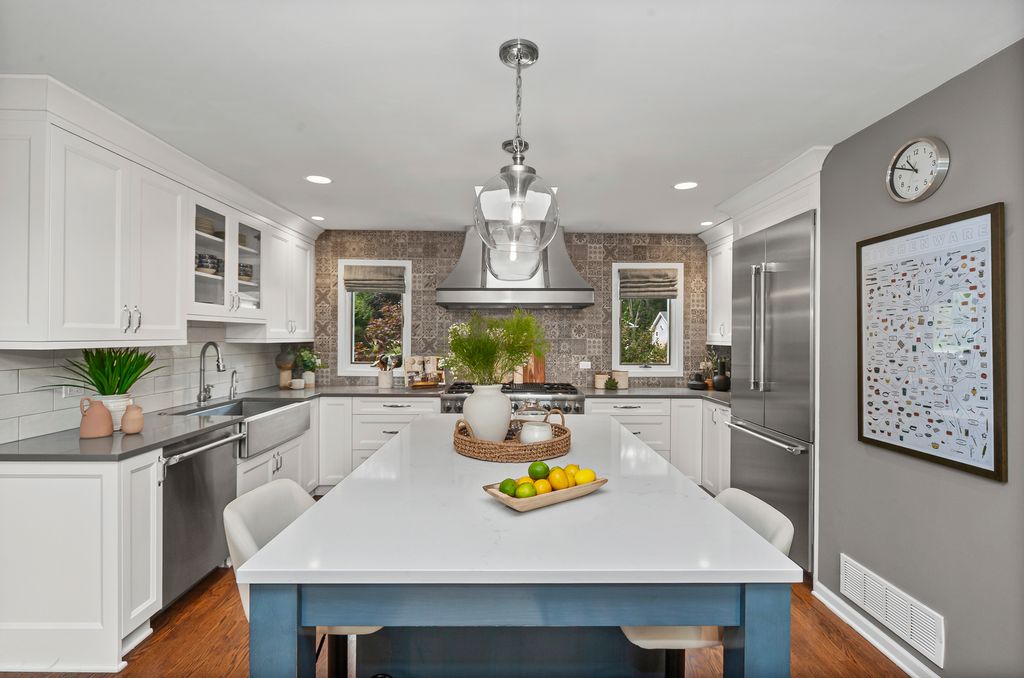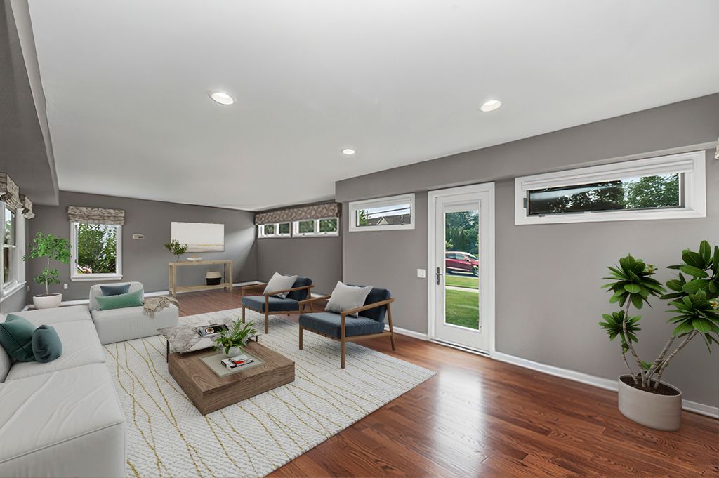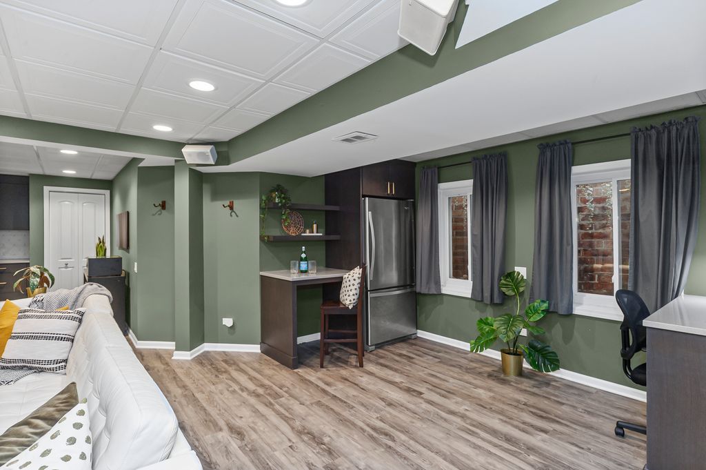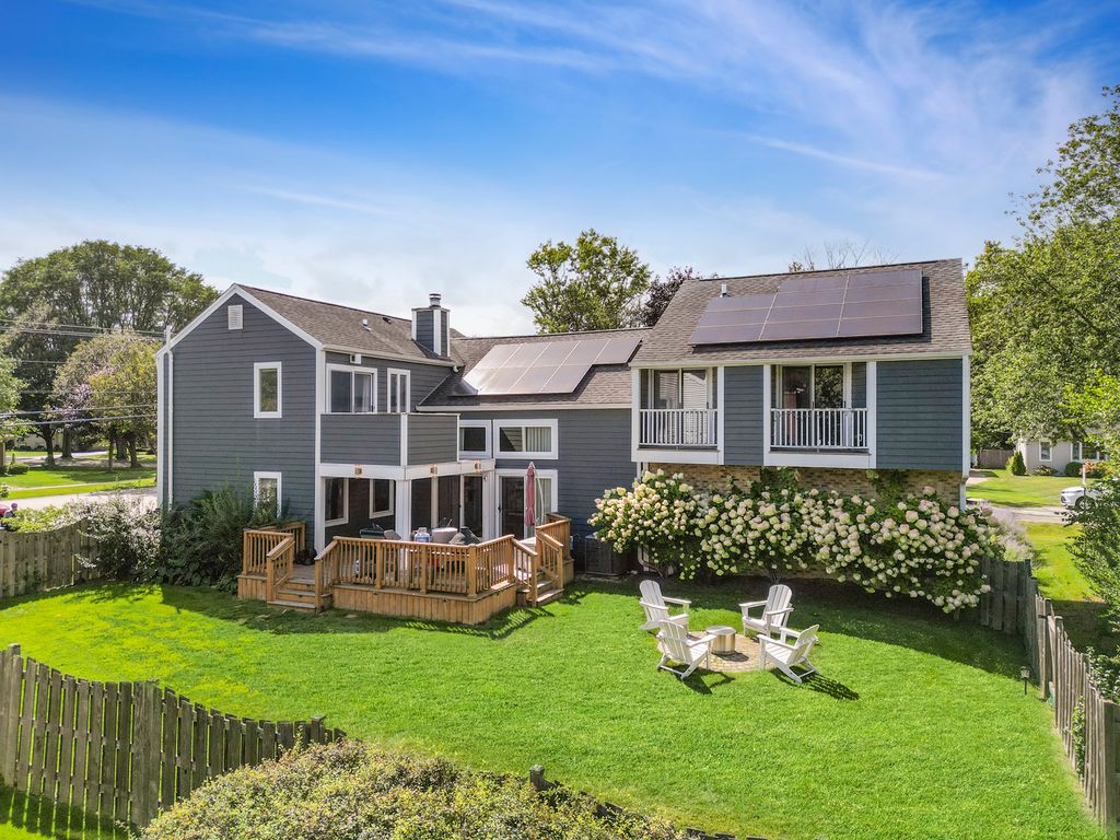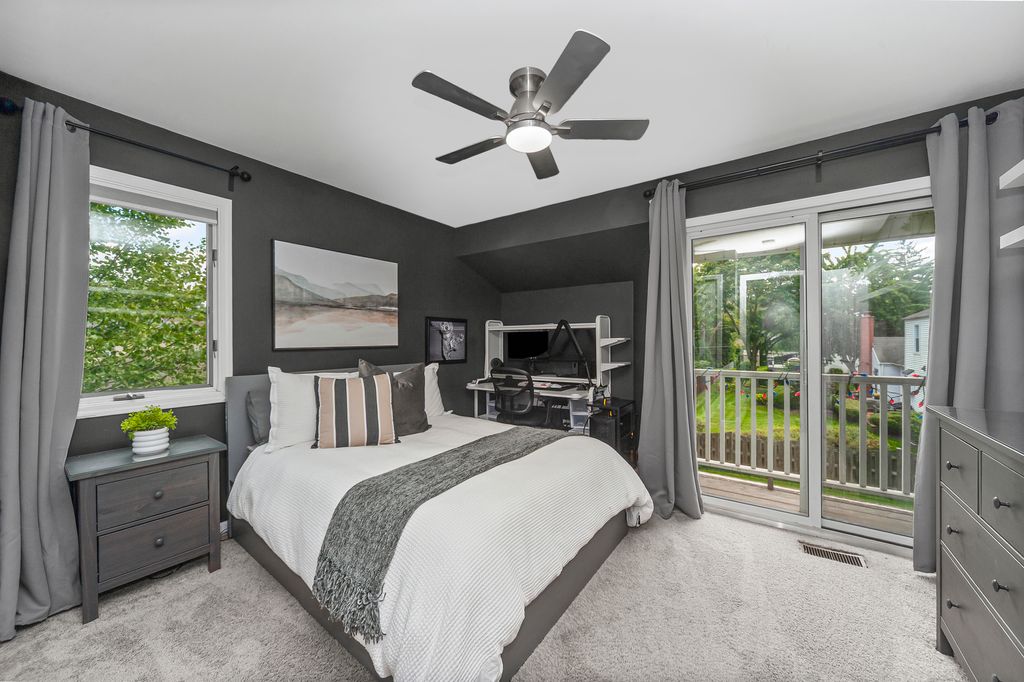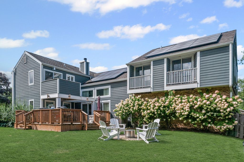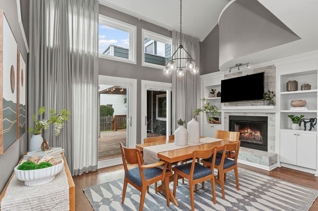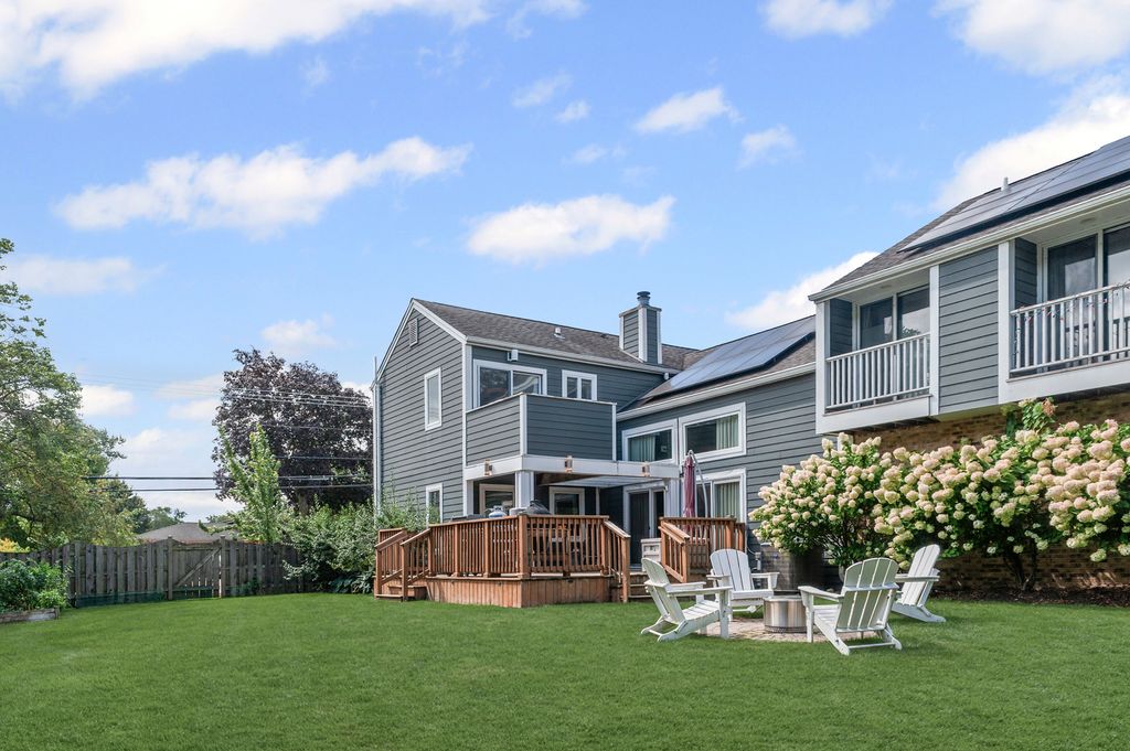 This striking contemporary residence captures attention with its distinctive gray facade accented by a bold yellow front door, setting the tone for the architectural drama within. Inside, the home unfolds with soaring spaces and extraordinary details, including a lofted sitting area overlooking the breathtaking two-story dining room-a centerpiece designed for both elegance and light. The recently remodeled lower level extends the living experience, offering a stylish entertainment lounge complete with a custom bar and dedicated desk spaces, ideal for today's versatile lifestyle. Upstairs, three of the four bedrooms open to private balconies, a rare and exceptional feature that enhances the home's modern character. The luxurious primary suite boasts a spa-inspired en suite bath, blending sophistication with serenity. Outdoor living is equally impressive, with a spacious wooden deck perfect for hosting gatherings or enjoying quiet evenings. Set on a prominent corner lot in a premier Arlington Heights location, this residence combines architectural ingenuity with high-end finishes throughout, creating a truly one-of-a-kind opportunity for the discerning buyer.