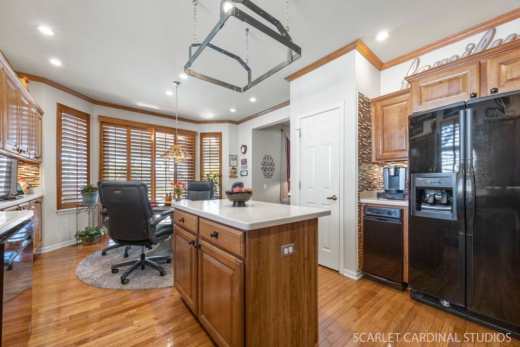 Welcome to this charming and well-maintained single-family residence nestled in the vibrant Sun City Huntley 55+ community. This ranch floor plan has large room sizes and 3 bedrooms, 3 full baths and approximately 1,710 SF above grade plus a mostly full finished basement. Step inside to elegant hardwood floors, plantation shutters, an inviting living room, and formal dining room in an open concept layout. You'll love the generously sized kitchen with crown molding, beautiful Hickory cabinets, solid surface counters, above cabinet and under cabinet lighting, island that enhances the already generous kitchen storage, and an eating area. The electric cooktop and stove includes convenient access for optional gas conversion. The primary ensuite has a walk-in closet, bay window, bath with elbow room and knee space for a sit down countertop, plus separate tub and a low threshold step-in shower. There is a first floor laundry room attached to a separate flex room handy for whatever you need: office space, main level storage, or work room. It almost feels like there is a whole 2nd home in the full finished basement complete with a kitchenette area including stove, dishwasher, refrigerator, full bath with walk-in shower, and bedroom suite. The basement living area features a double sided fireplace making the space warm and cozy in the recreation and game room which extends the length of the basement and is perfect for leisure, hobbies, or entertaining. In addition to the utility room, a work room with cabinets and countertop makes for convenient storage of tools and equipment for small house projects. The fabulous composite deck with pergola, natural gas connected grill, and water fountain provides a wonderful space to relax and enjoy the south facing outdoors. The attached garage with tall ceiling has great add-ons such as abundant lighting, shelving, and workbench space. An in ground lawn sprinkler system is included. The Sun City lifestyle community is also a great asset: this resort-style, active-adult (55+) development spans over 2,200 acres and has been designed to deliver both luxury and ease of living. Residents enjoy the benefits of: an award-winning 18-hole golf course; indoor and outdoor pools & spas; state-of-the-art fitness centers; tennis and pickleball courts; scenic walking/biking trails; and many chartered clubs and special-interest groups. Sun City's two clubhouse lodges include the 94,000-sq-ft Prairie Lodge hosting crafts, fitness, social-events, professional grade woodworking shop, ballroom and more - provide ample opportunities for connection, wellness and recreation. The location is outstanding. Sun City Huntley is easily accessed via I-90/Route 47. In addition, the broader Huntley area offers nearby nature preserves, walking trails, golf courses beyond the community, and a growing village with restaurants, shopping, and small-town charm. Perfect for those looking for resort-style amenities or a social active-adult community. Roof 2018, AC and Furnace 2019, Microwave 2020, Water Heater 2022, Dishwasher 2025. Aging in place enhancements throughout, including grab bars and a mechanical stair lift to the basement, complement the meticulous maintenance of this home over the years. The craftmanship and care from these original owners will make this a superb investment for you.