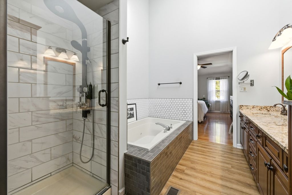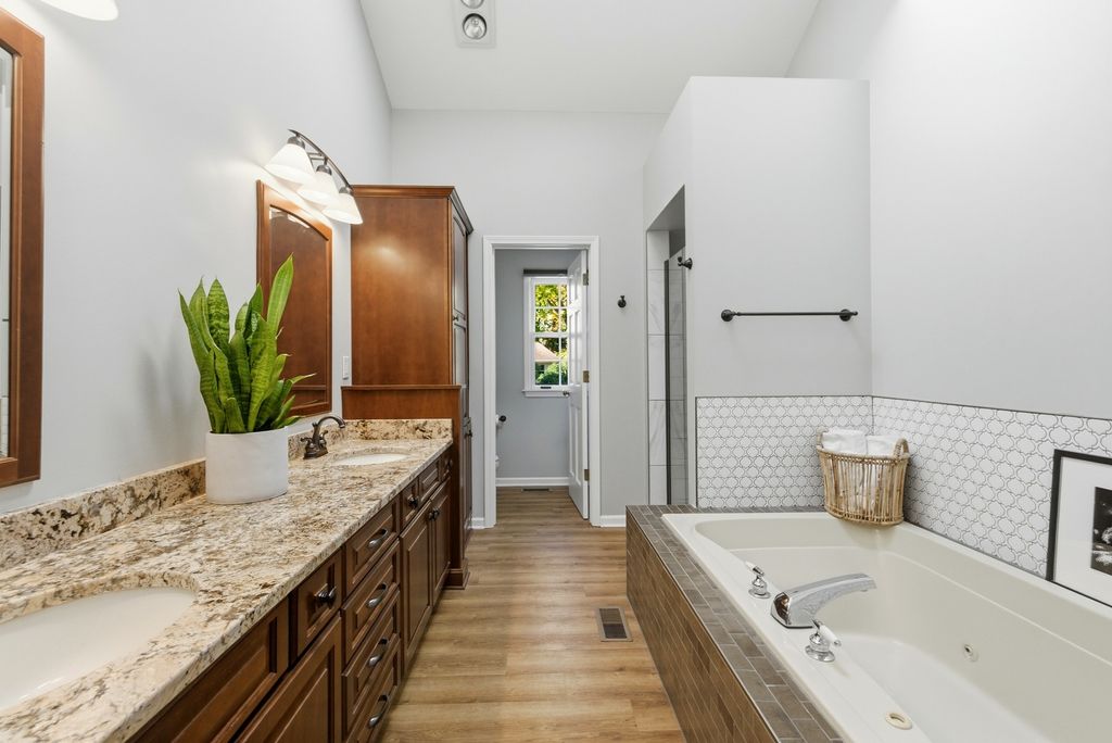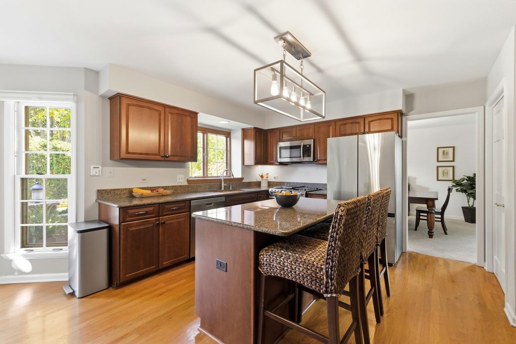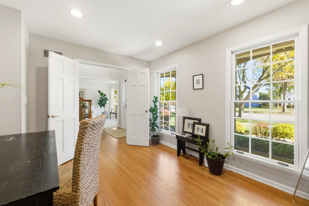 Welcome to this inviting home in the highly sought-after Seven Bridges subdivision! A welcoming front porch sets the tone for this spacious and well-designed residence featuring a two-story entryway and a thoughtful floor plan. The first floor includes a private office with double doors and a closet, perfect for working from home. The living and dining rooms both feature bay windows and plush carpeting, ideal for entertaining. The kitchen offers granite countertops, stainless steel appliances, an island, pantry closet, and generous counter space including a serving area. A doorway leads to the amazing backyard oasis with a brick paver patio, inground pool, and mature private landscaping, perfect for relaxing or hosting gatherings! Enjoy the sunken family room with a beautiful fireplace and soaring ceilings overlooking the pool. A mudroom, laundry room, and powder room are conveniently located just off the attached two-car garage. The full finished basement adds even more living space with a fifth bedroom, full bath, plenty of storage, and an extra refrigerator, great for guests or extended family. Upstairs, you'll find four bedrooms, all with ceiling fans. The primary suite features hardwood flooring, a tray ceiling with a beautiful fan, a walk-in closet with access to attic storage (which could be finished as a future bonus room), and a luxurious spa-like master bath with dual sinks, tile surround soaking tub, modern rainfall shower panel system, private toilet room, and soaring ceiling with skylight. The hall bath offers dual sinks and ample space for family or guests. This home combines comfort, style, and function in one of the area's premier communities, close to parks, shopping, dining, and top-rated schools! Live here and make it a wonderful life!