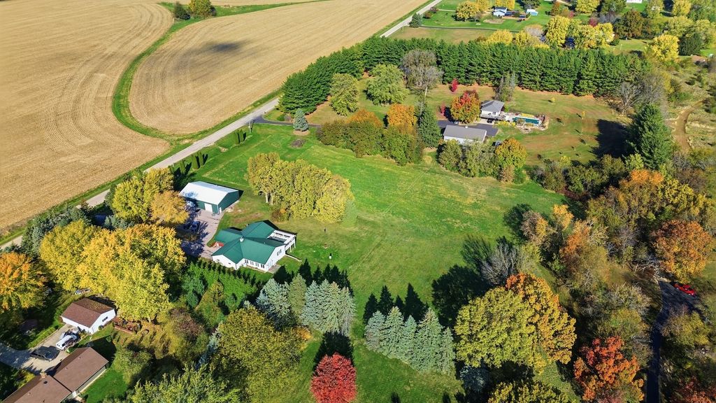 Experience country living at its finest in this immaculate 3-bedroom, 2-bath home set on 5 picturesque acres. The property features stunning hardwood flooring, a spacious open kitchen with island, and a formal dining room currently used as a den. Enjoy the convenience of main floor laundry, a bright Florida room overlooking the peaceful backyard, and a large screened front porch perfect for relaxing mornings or summer evenings. The inviting living room includes a cozy wood-burning fireplace, adding warmth and charm to the main level. Step from the kitchen onto the large deck-ideal for entertaining or simply taking in the serene views. The full finished walkout basement expands your living space with a large family room, bedroom, and a full bath featuring a jetted tub and walk-in shower, plus a second laundry area for added convenience. Walk right out to the patio and enjoy the beautiful outdoor space. A 40x60 outbuilding offers endless possibilities for storage, workshop, or hobby use. The home also includes an attached 2-car garage. This exceptional property provides space, comfort, and privacy-all within easy reach of town amenities. Estate sold as is, seller is in process of getting well and septic inspected.