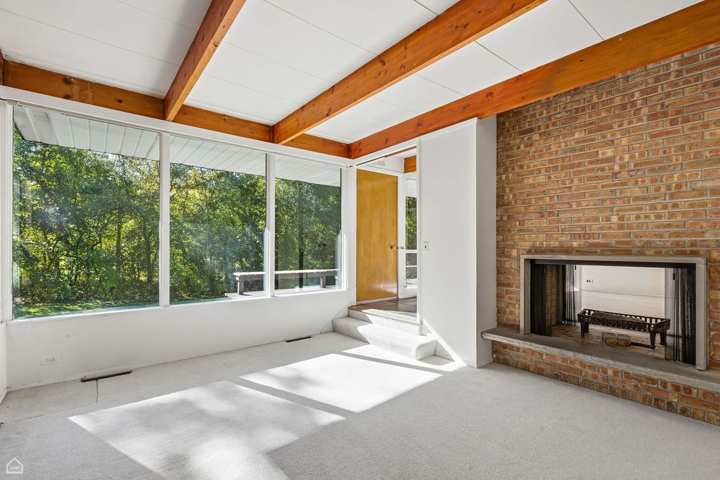 Subtle mcm stunner! Own a part of history in the York-Center Co-op (iykyk) while living the mid-century modern life in this suburban oasis. Watch the seasons pass through floor to ceiling windows, scheme on your garden while basking in the warm glow of afternoon light, or enjoy the sounds of friends and family while entertaining. Natural light and greenery flood the home from every angle and connects the occupant to the lavish grounds surrounding the home. Perched on nearly an acre, the original York-Center co-op owners have left this architectural masterpiece completely intact. A sunken conversation pit will welcome your family and guests alike. And what better conversation starter is there than a pass-through fireplace to the open concept living and dining areas that anchor the home, and lead to a galley kitchen and attached garage? Three bedrooms and a full bath round out the main floor. The finished basement is sure to impress with it's oversized fourth bedroom, living area, full bath and workshop area. Don't let this one slip away, this is the mcm home you've been looking for!