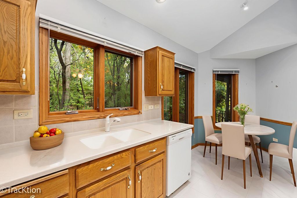 This stunning 3-bedroom, 3.5 bath end unit townhome offers 4,473 sq. ft. of spacious living with fresh new flooring and paint throughout, making it truly move-in ready. Enjoy the ease of main-level living with a generous first-floor primary suite featuring a luxury bath, walk-in closet, and convenient first-floor laundry. The open-concept main living area is filled with natural light and framed by wooded views from nearly every room, creating a peaceful and private retreat. The spacious kitchen includes a center island, eat-in area, and planning desk-perfect for daily living or entertaining. Step outside to a private deck with access from the living room, den, and primary suite, ideal for relaxing or hosting guests. Additional highlights include two gas fireplaces (one on the main level and one in the finished lower level), an oversized 2.5-car garage with epoxy-coated floor, and a fully finished basement with wet bar, beverage cooler, full bath, gas fireplace, and plenty of room for recreation or entertaining. Have you been thinking of downsizing but can't part with all your favorite things? This home offers incredible value and the perfect opportunity to customize to your own style, without sacrificing the space, comfort, and functionality you love. Located in one of the best areas of the western suburbs, you'll love the convenience of having shopping, nature, restaurants, highways, and the hospital all just minutes away. Offering the perfect blend of privacy, comfort, and accessibility, this townhome is one you'll want to call home.