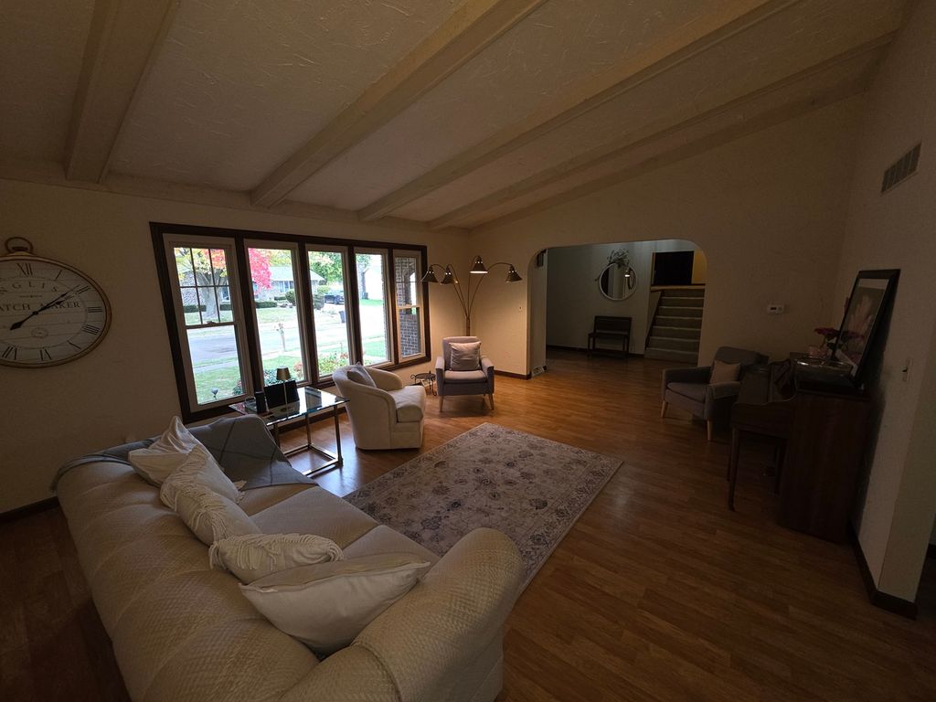 Spacious Quad Level home on double corner lot in popular Greenridge subdivision. New roof 2025. New windows, approx. 2018. Living room has beam and vaulted ceiling. New furnace and central air 2019. Kitchen has center island and closet pantry. Appliances include double oven, refrigerator, gas range top and dishwasher. Full bath has double sink. Master bedroom has walk in closet and private full bath with walk in shower. New hot water heater 2022. New concrete driveway 2018. New garage door opener 2024. Nicely landscaped with 18x33 deck with hot tub. Fenced area in back yard. Central Vac system -not working. Include lot pin #1115351003.