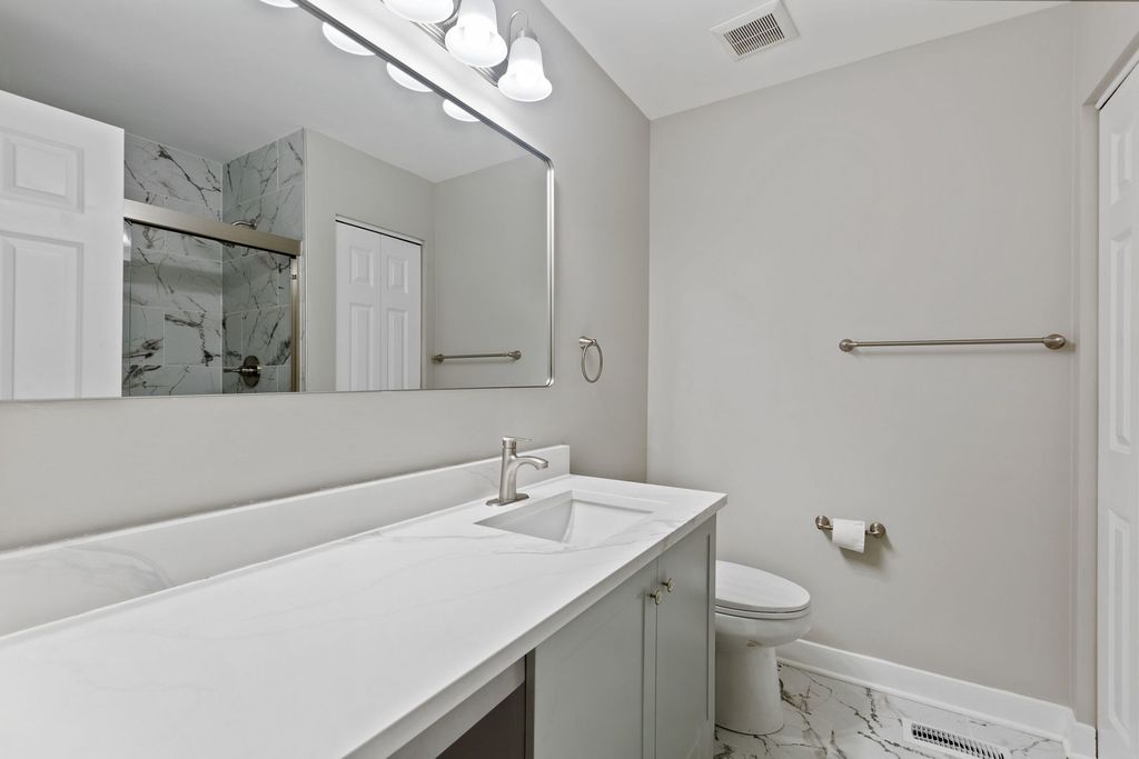 If you are looking for a fully renovated and comfortable experience, I introduce you to 1203 Brookdale Dr. The open concept layout is felt throughout the home, but still provides a warm and inviting feeling. This upper level end unit offers 2 bedrooms, 2 full baths, and a very generous living space. Just about everything at this home has been updated. From garage door, new vinyl and modern flooring, new appliances, window blinds throughout the home, new furnace (2025), and two fully remodeled bathrooms, vaulted ceilings, and plenty of natural light bring a "home like" atmosphere. The spacious kitchen features 42" cabinets, a breakfast bar, a closet pantry, and newly installed quartz counter tops. The family room, comes with a fireplace, leads you to a private balcony to enjoy the beauties of nature right in your back yard. The master bedroom bedroom features a private bath with a step-in shower, a walk-in closet for ample space and with reinforced shelving. On the other side of the unit you have the second bedroom, and a laundry room, also equipped with reinforced shelving. Recent updates include a water heater (2019), dishwasher (2021), microwave (2025) disposal (2023), and washer/dryer (2019). Conveniently, other amenities include an attached garage, guest parking directly across the street, and extra street parking nearby. Located in a centralized location with everything that Carpentersville has to offer. 1203 Brookdale is one of a kind, surrounded by forest preserves for nature lovers, a movie theater, shopping, restaurants, access major highways with ease as well as close to Algonquin, Elgin, Hoffman Estates and Barrington. Don't miss this opportunity.