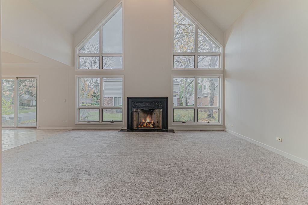 This all-brick home is located in the desirable, rarely-available, and exclusive Rivershire gated community and offers the luxury of high-amenity living: clubhouse, pool, landscaping, snow removal, and security gate all included. Enter through the front door into a dramatic foyer with hanging light fixture and 20 ft ceilings. FIRST FLOOR luxury master suite with picture window, large walk-in closet, and dramatic ensuite bathroom with soaring 15 ft ceilings, dual vanity, and whirlpool tub. Walk into the living room featuring a wood-burning fireplace centerpiece, 20 ft vaulted ceiling, and floor-to-ceiling windows. NEW CARPET AND FRESH PAINT THROUGHOUT. The adjoining dining room has tall 9ft ceilings, stylish soffits, and sliding door access to the brick patio, where you can take morning coffee or entertain. The kitchen features an island with built-in range, recessed lighting, tall 42" cabinets, and eat-in with bay windows. An additional first floor room can be used as a bedroom or office. The large second-floor guest bedroom has an ensuite bathroom, walk-in closet, and large tandem room for additional storage or recreational area. Two-car attached garage with direct access to the laundry room. High-end, brick paver common drive way. New front entrance door has been ordered and will be installed by the seller before closing. Selling as-is.