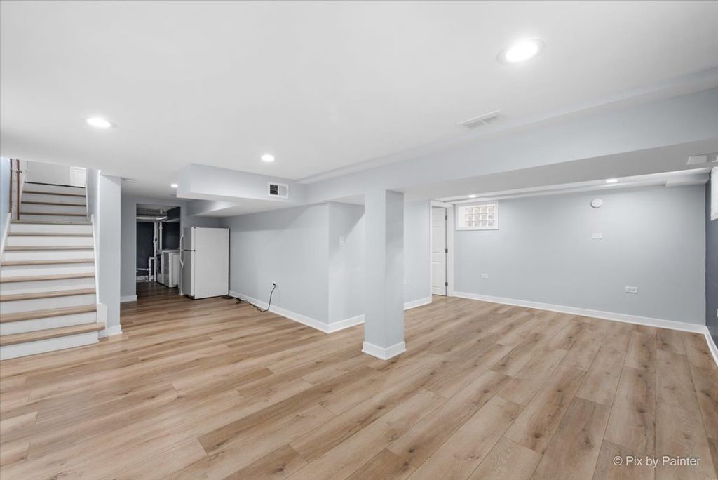 Welcome home to this charming brick ranch in the heart of Dunning! Thoughtfully updated in all the right places, this home offers comfort, convenience, and room to make it your own. The main level features two bright bedrooms, a full bath, and a spacious living and dining area with hardwood floors. The kitchen has been refreshed with brand-new white shaker cabinets and plenty of counter space. Downstairs, the finished basement (2024) adds a private primary suite with a modern full bath, double vanity, and beautiful glass shower - plus plenty of space for a family room or home office. You'll appreciate peace of mind with new siding, gutters, and a tear-off roof (2024), along with updated plumbing featuring above ground lines and a sump pump system. Outside, enjoy a fenced backyard with a brick paver patio - perfect for grilling or relaxing. Many updates are already complete, and with just a few finishing touches and your personal style, this home will truly shine. A great opportunity in a welcoming neighborhood close to Harlem & Irving Plaza, parks, shops, and dining!