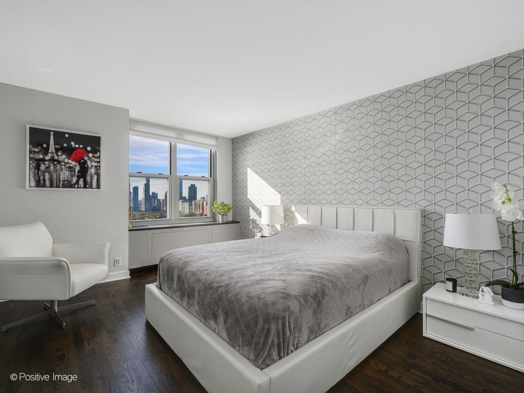 Spectacularly Designed 1-Bedroom with Panoramic South Views of the Lake and Park Millennium. Experience elevated city living in this expansive 1 Bedroom residence offering breathtaking panoramic views and modern finishes- designed for those who appreciate refined living. Every detail of this home has been thoughtfully curated for elegance, comfort, and modern sophistication. The open-concept kitchen impresses with sleek gray cabinetry, dual pantries, stainless steel appliances, and a striking quartz island perfect for entertaining. The inviting living area is highlighted by a custom accent wall featuring an electric fireplace-beautifully blending modern design for timeless appeal. Recessed lighting and modern fixtures fill the space with a warm, ambient glow. Retreat to the oversized primary bedroom with two custom-organized walk-in closets, providing abundant storage and style. The spacious bathroom showcases exquisite tile work and refined craftsmanship in every detail. Throughout the home, subtle designer touches-such as a built-in bar-add sophistication and functionality. This residence perfectly balances beauty, comfort, and everyday luxury.