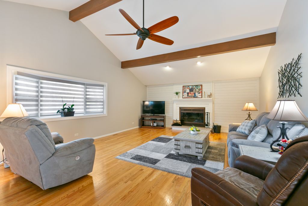 Welcome to this spacious family home in a premium Palos Heights neighborhood. This 3BR 2BA ranch home has been completely updated. Gleaming hardwood floors throughout the main level except the kitchen and baths. Huge great room offers vaulted ceilings and woodburning with gas starter fireplace. Gorgeous kitchen with granite counters, newer cabinets and high end stainless appliances. (Check out the ice in the freezer!) Loads of recessed lighting along with natural sunlight. Primary bedroom has a large custom closet. 3rd bedroom is used as an office, but can easily be a bedroom with closet. Sitting room is cozy and bright. Both baths have been beautifully updated. Rec room in the basement has ceramic flooring and loads of storage. Exterior has newer siding and roof, as well as a repaved driveway. Backyard is fully fenced with brick pavers, storage shed and fire pit. Too much to list. Close to parks, trails, shopping and restaurants. Come see for yourself. You will not be disappointed!