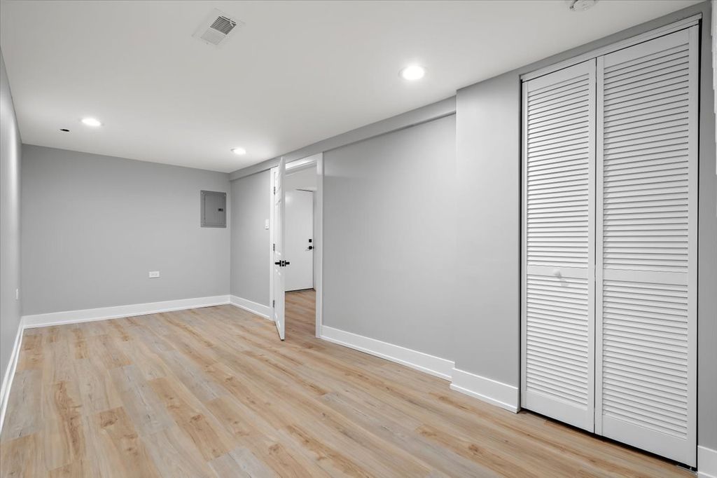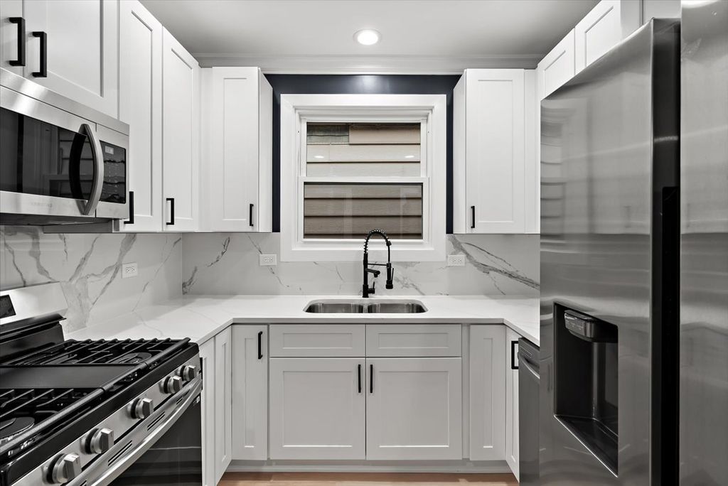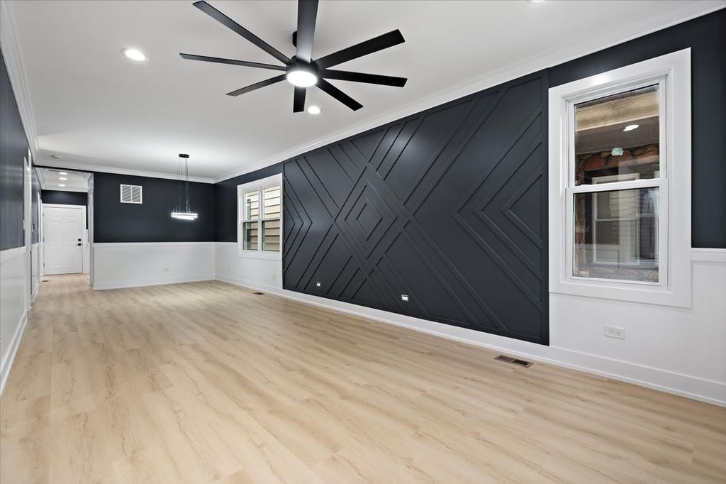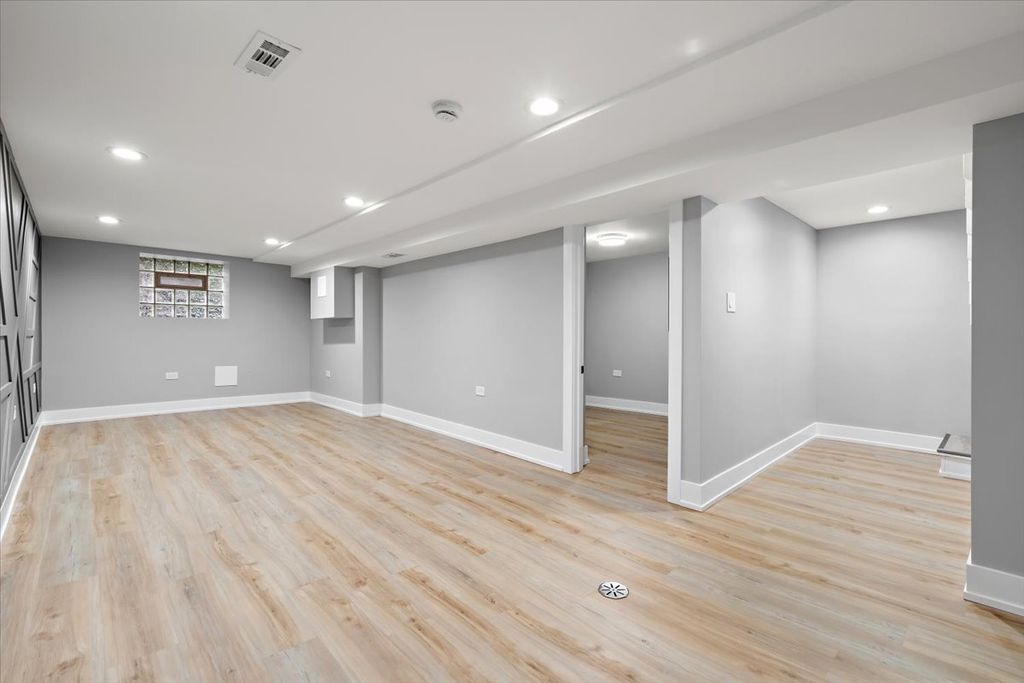 In the heart of Marquette Park and just half a block from Murray Park, this beautifully renovated bungalow offers 4 bedrooms, 2 bathrooms, and a layout designed for modern living. From the open floor plan to the engineered flooring and elegant finishes-including LED recessed and modern lighting, wainscoting, and crown molding-every inch reflects craftsmanship. The living and dining rooms feature a striking accent wall, while the kitchen shines with 42" white shaker cabinetry, quartz countertops, stainless steel appliances, and a full tile backsplash. Downstairs, the finished lower level expands your living space with a spacious family room, another custom accent wall, a fourth bedroom, a den/office, and a second bathroom. New plumbing, electric, and HVAC ensure peace of mind. Outside, enjoy a private yard, a 2-car brick garage with double overhead doors, and a concrete pad perfect for entertaining. This home is renovated to impress-and ready to welcome its next chapter!