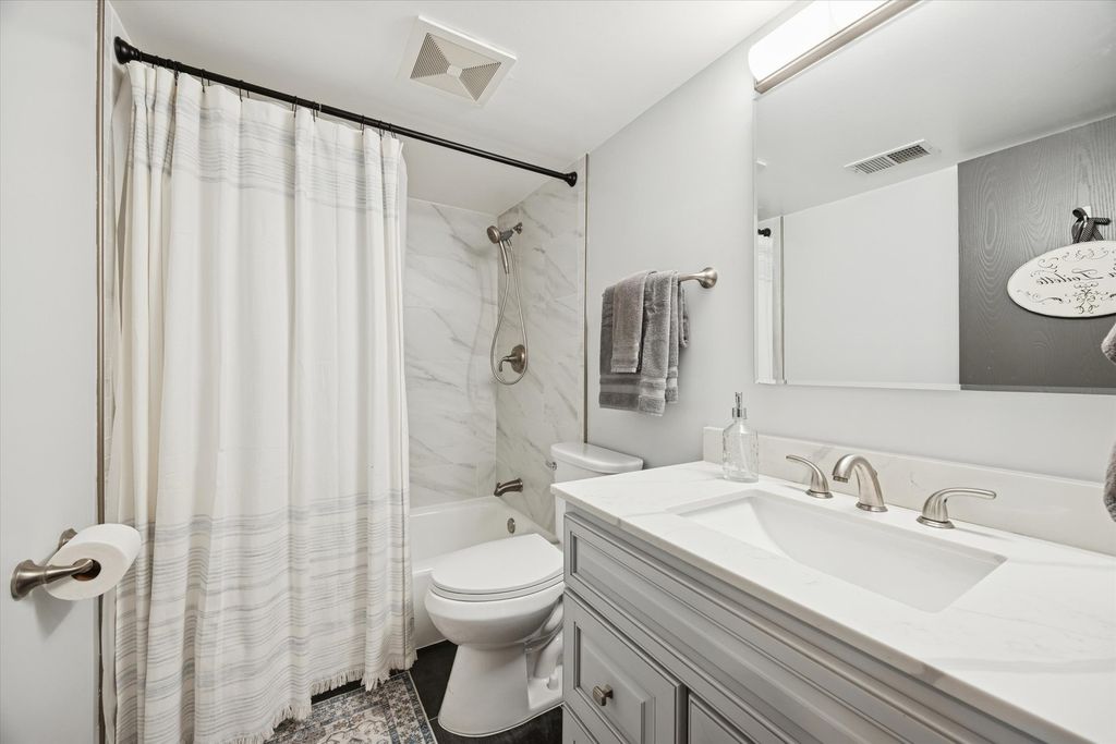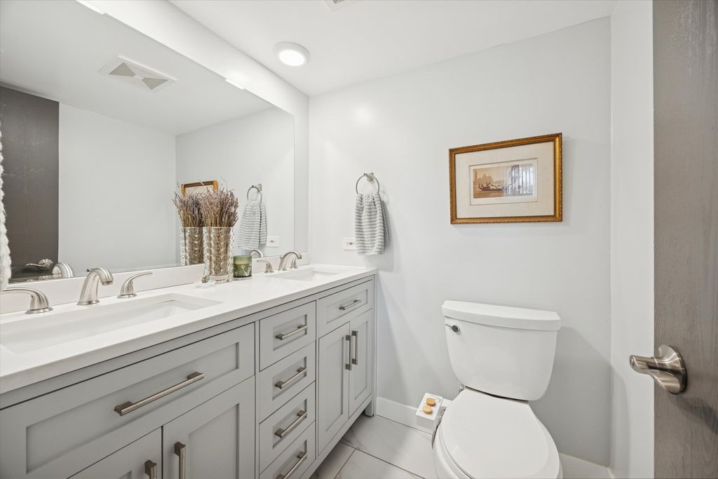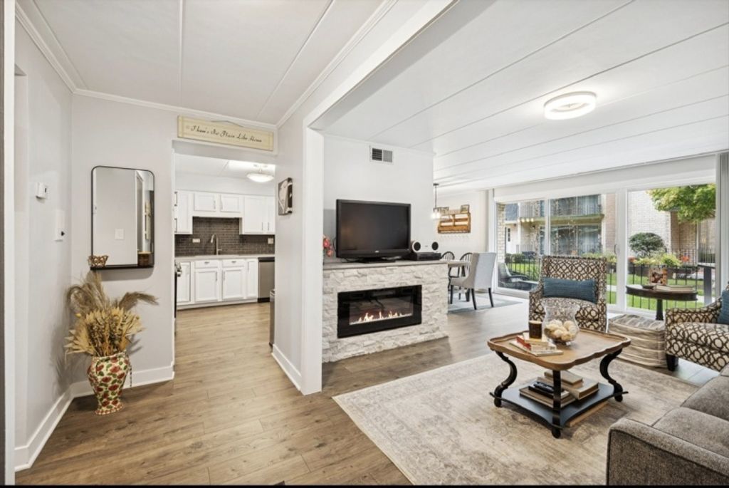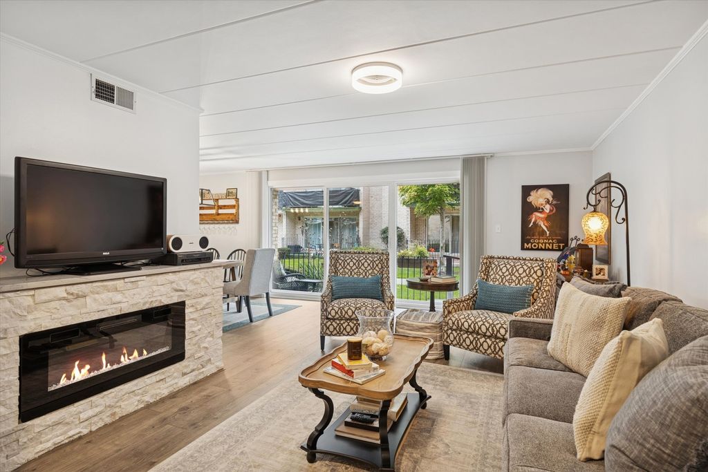 Tastefully appointed 2 bedroom condominium, centrally located within a two block radius of Oak Lawn Racquet & Fitness Center and shopping mall. Updated in 2022 with laminate wood flooring spanning throughout the entire unit. Open concept is ideal for entertaining, allowing sightlines from kitchen into the dining room, which can accommodate seating for 6+guests. The living room's stone facade fireplace creates an inviting environment. Private balcony accessible off the living room provides an addition 70 square feet of living space, looking onto the courtyard. Spacious kitchen is designed with stainless steel appliances, durable granite countertops and functional 5 foot coffee bar. Primary bedroom offers abundance of storage with two double door closets and an en suite bathroom equipped with a double vanity. Both generously sized bedrooms can fit a queen size bed or larger. Dedicated laundry room conveniently situated in-unit and includes Samsung Washer (2022), Dryer (2022) and utility sink. Large Basement Storage (22X13) and exterior Parking Space included.