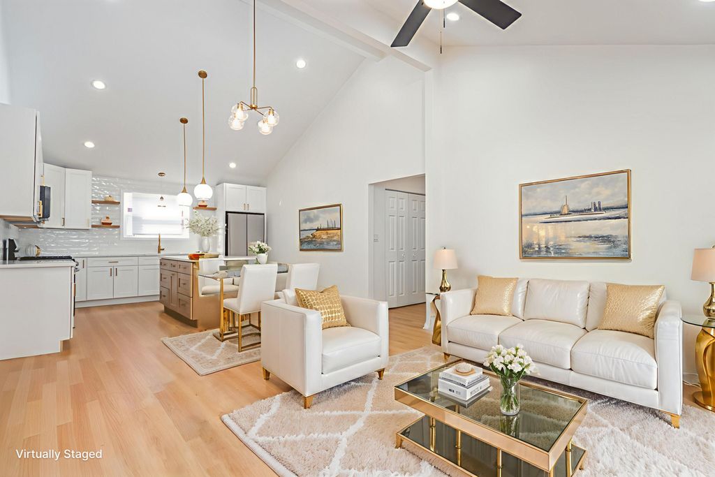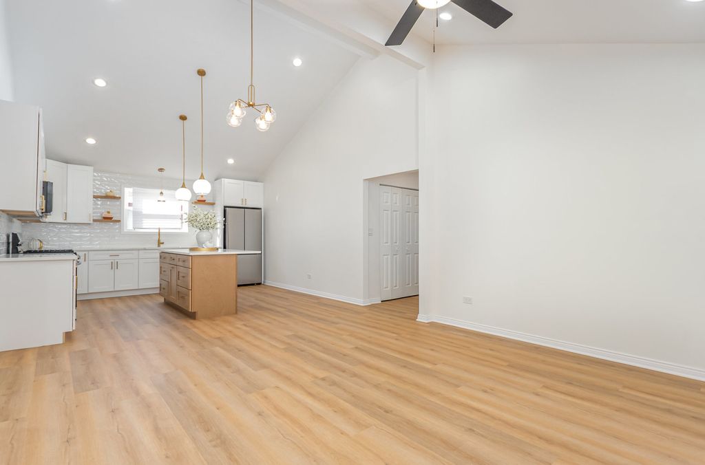 LIKE NEW CONSTRUCTION!! You will love this spacious 3 BEDROOM / 2 BATH - FULLY REHABBED maintenance free vinyl ranch home w/attached garage. Custom white trim and gorgeous 6-panel doors throughout. STUNNING BRAND NEW OPEN-CONCEPT KITCHEN with vaulted ceilings, plenty of custom 42" white cabinets accented with gold hardware, beautiful high-end Quartz countertops, large island/eating area, full stainless steel appliance package, drop sink, commercial faucet w/sprayer and custom subway glass tile backsplash. LUXURY VINYL PLANK FLOORING throughout including in bedrooms. Modern bathrooms showcasing stunning tilework, new vanities and all new fixtures including full size shower in private primary bathroom. Bedrooms are generous size with WALK-IN CLOSETS! Separate laundry room area is equipped and ready for full size washer and dryer. Large living room with vaulted ceiling and sliding patio door - it's the perfect place to entertain! This floor plan offers plenty of flexibility to fit your family -- vaulted living room can be used as a large dining room and 3rd bedroom can be used as a separate living room if preferred. Professionally painted throughout with beautiful modern color choices. Recessed lighting and all new fixtures throughout. ALL NEW VINYL WINDOWS and EXTERIOR DOORS! NEW ROOF - complete tear off with 30-year architectural shingles!! BRAND NEW MECHANICALS including energy efficient furnace, A/C and gas hot water heater. Updated plumbing and electrical with new electric panel! This home offers exceptional value -- it looks and feels like new construction - it even has all new drywall and insulation! MAINTENANCE FREE HOME! Nothing to do here except relax and enjoy your private partially fenced backyard with room to grill and entertain. Commuters can easily access major highways, dining shopping and schools. Taxes include homeowner's exemption. Book your showing today!