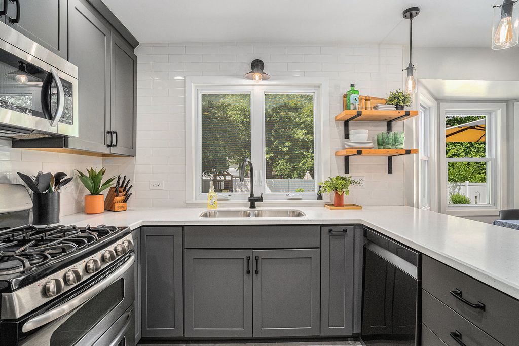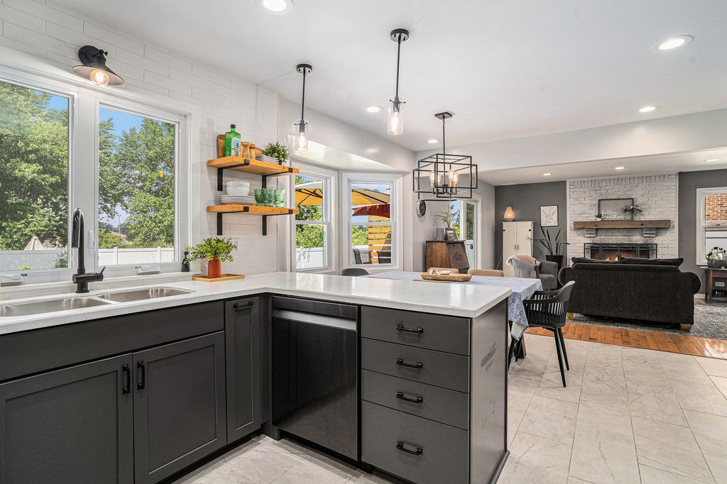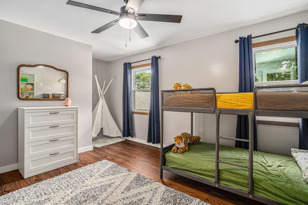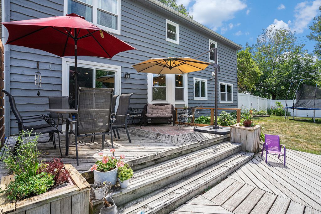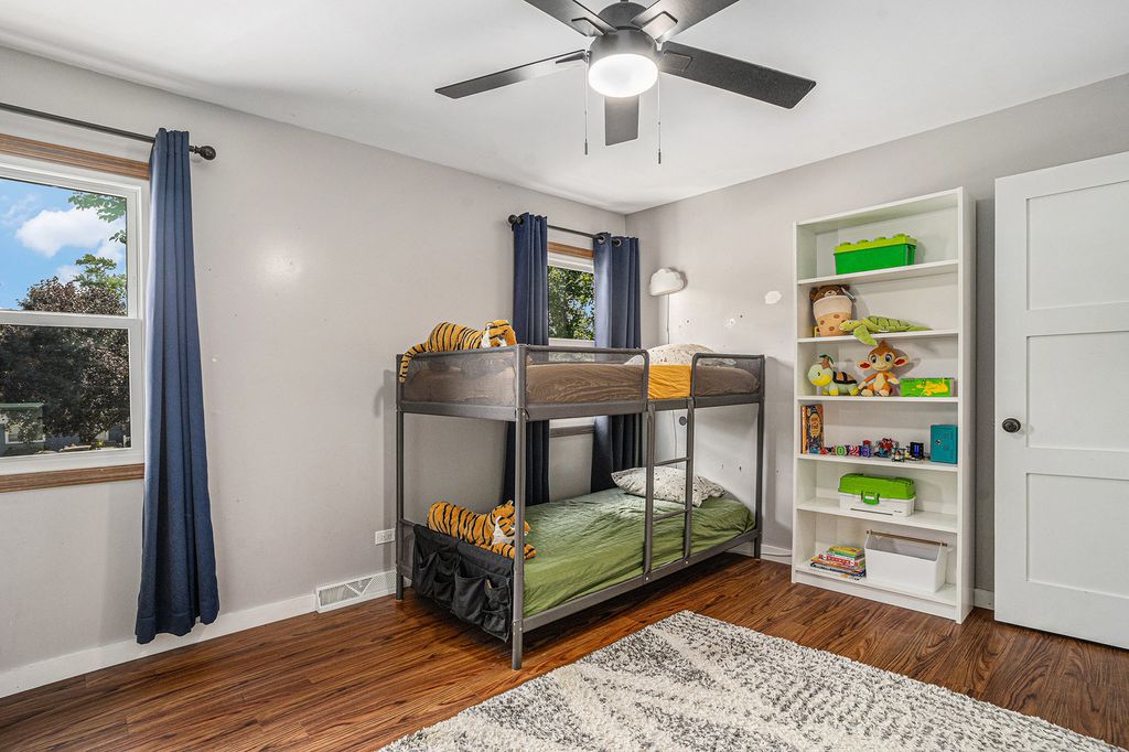 Welcome to 1614 185th St. - a gorgeous 4 bedroom, 2 full bath, and 2 half bath home that blends charm, comfort, and thoughtful updates throughout. BRAND new vinyl windows! From the moment you arrive, you'll be drawn in by the striking curb appeal, highlighted by beautiful cedar siding and a spacious covered front porch. Step inside to find gleaming hardwood floors that flow through the generous living and dining rooms. The heart of the home is the open-concept, eat-in kitchen-completely remodeled in 2019-which overlooks a cozy family room with fireplace. Throughout the home, you'll find new interior and exterior doors, adding a fresh and polished touch to every room. A convenient mudroom/laundry room on the main floor leads directly to the attached 2-car garage, making everyday living a breeze. Upstairs, all four bedrooms are spacious, including the stunning primary suite with soaring cathedral ceilings, abundant natural light, a walk-in closet, and private bath. The finished basement adds even more living space, perfect for a home office, rec room, or guest suite, complete with a powder room and a large storage area. Enjoy peace of mind with a brand new HVAC system, newer tankless water heater, and a fully fenced backyard featuring a large deck-ideal for entertaining or relaxing. As a bonus, there's an irrigation system to ensure thriving crops for your garden. This is a truly move-in ready home with timeless features and modern comfort!