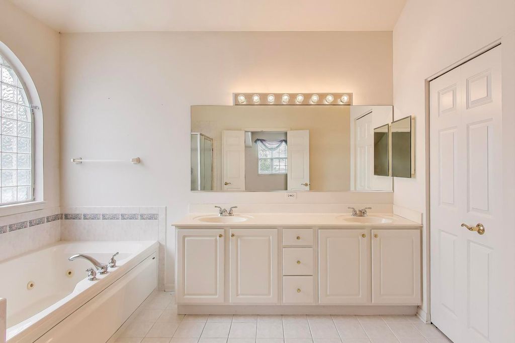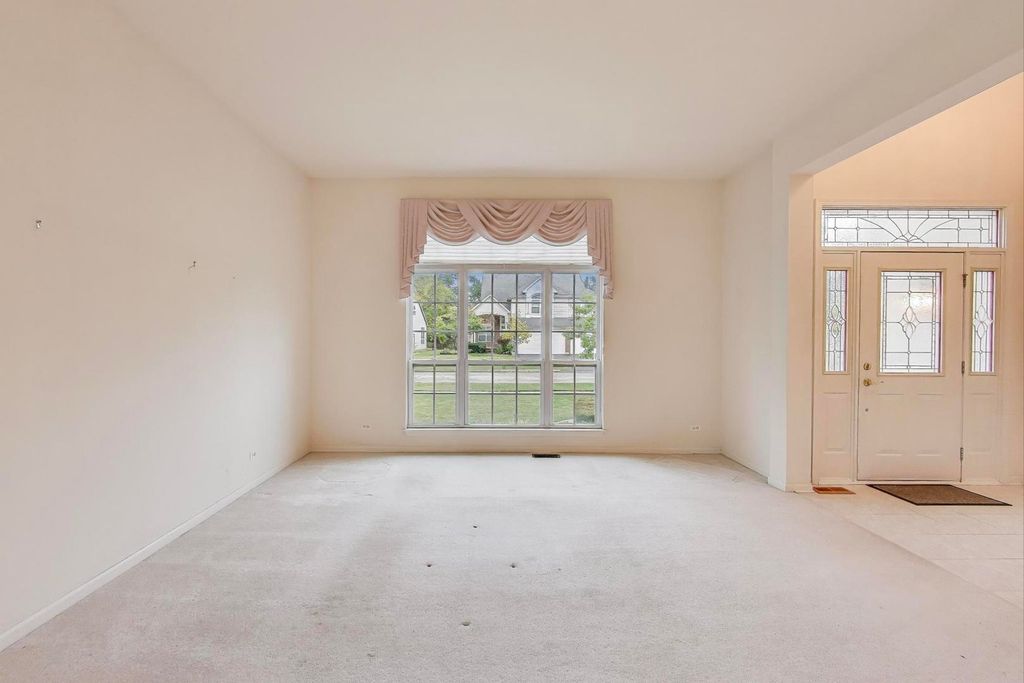 This spacious residence, nestled in a picturesque sidewalk community of Palatine, offers generous living space and a layout designed for both comfort and entertainment. As you enter, you're greeted by a stunning two-story foyer that sets the tone for the inviting atmosphere throughout. The bright and airy living room, with south-facing windows that bathe the space in natural light, flows seamlessly into the elegant dining area. The heart of the home is the grand vaulted family room, featuring an open concept design that effortlessly connects to a well-appointed kitchen. With an abundance of cabinetry, endless Corian countertops, and a convenient island for additional seating, this kitchen is perfect for hosting gatherings and creating lasting memories. Cozy up during cooler evenings by the fireplacs in the expansive family room. Step outside to your beautiful brick paver patio, ideal for entertaining guests or enjoying quiet evenings outdoors. On the main level, you'll find a versatile bedroom/office space and a full bathroom with a walk-in shower, perfect for accommodating guests or in-laws. The attached three-car garage includes ample storage, and the convenient mud/laundry room off the garage serves as a great drop zone for busy days. As you ascend to the second level, you'll discover the exquisite primary suite, complete with an organized walk-in closet that is a must-see! The primary bathroom features a double vanity, a walk-in shower, and a luxurious soaking tub. Three additional bedrooms and another full bath round out the upper floor, providing plenty of room for family or guests. Don't overlook the full basement with 9' ceilings and roughed-in plumbing-this blank canvas is ready for your personal touch, whether you envision a recreation room, extra storage, or an additional bathroom. Located within top-ranked Fremd High School district and conveniently close to parks, Harper College, and Metra access in downtown Palatine and Arlington Park, this home is not just a place to live, but a lifestyle to embrace.