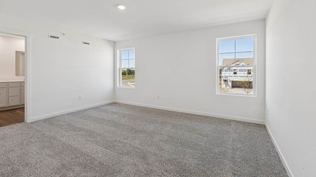 Discover yourself at 3534 Richardson Cir, Yorkville, Illinois, a beautiful new home in our Grande Reserve community. This townhome will be ready for a SPRING move-in! Homesite includes a fully sodded yard that is maintained throughout the year as well as snow removal in the winter. This home is built on a premium lot with a spacious back yard. This Tallmadge townhome plan offers over 1,665 square feet of living space with 2 bedrooms plus a loft, 2.5 baths, a mudroom and a 2-car garage. As soon as you step inside, you'll be greeted by our open concept living area, featuring luxury vinyl plank throughout the main living areas. The expansive kitchen overlooks the dining and great room areas, making it the ideal space to entertain. Additionally, your kitchen features designer 36-inch soft close cabinetry, a spacious island with quartz countertops, and pantry. Enjoy your large primary bedroom with a walk-in closet and connecting en suite bathroom. The rest of the upper level features a laundry room, secondary bedrooms with a full second bath, and linen closet. All Chicago homes include our America's Smart Home Technology, featuring a smart video doorbell, smart Honeywell thermostat, smart door lock, Deako smart light switches and more. Exterior photo of actual home. Interior Photos are of similar home and model home. Actual home built may vary.