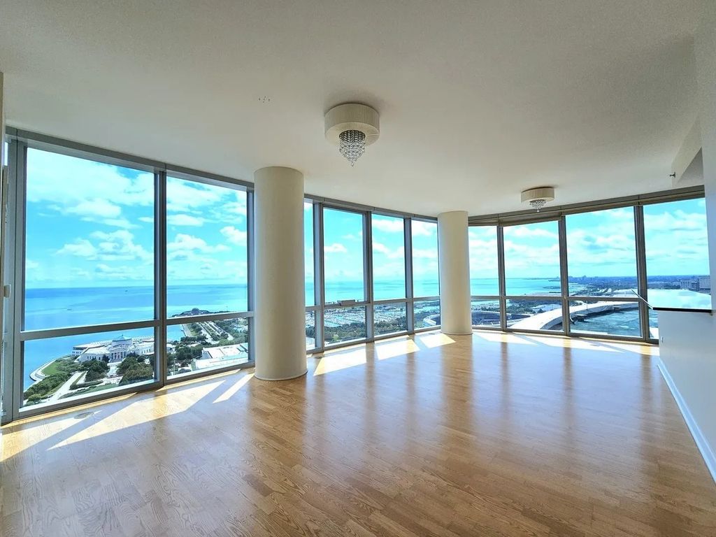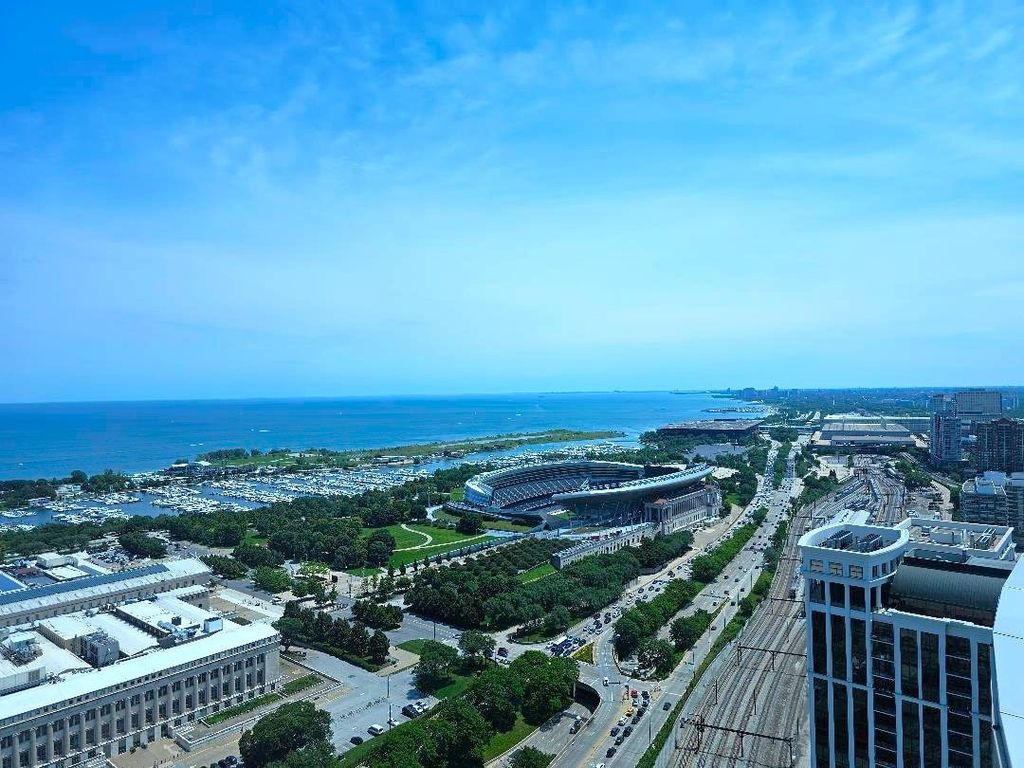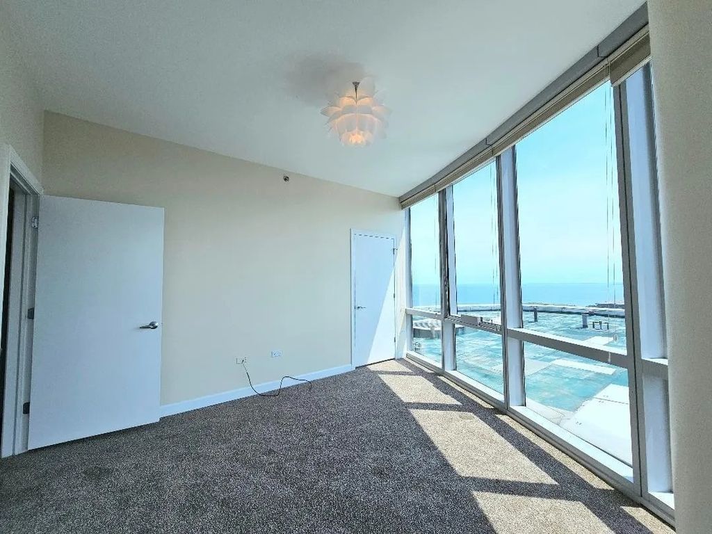 This 36th floor 2br/2ba plus office/den has fantastic East, South and West views of the lake and city from floor to ceiling windows. The gourmet kitchen with granite countertops has GE stainless steel appliance and a separate 6'x6' breakfast area. The bedrooms with large walk-in closets are on opposite sides of the unit giving total privacy. The living and dining room and hallways have hardwood floors. The bedrooms have plush carpeting. There is an in-unit washer/dryer. Ceilings are 9 feet. The building offers both in-door and out-door pools, saunas, large sun deck, state-of-the-art exercise facility, two gorgeous party rooms that can be rented out, a playroom and BBQ dining area. There is on-sight management and attentive door staff who bring packages to your unit. Nearly 5 million in reserves. This is a dog (and cat) friendly building.
