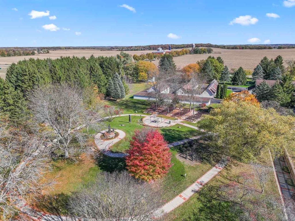 Truly one-of-a-kind property on 160 acres just outside of Twin Lakes! This expansive estate features a remarkable collection of buildings, starting with a 9-bedroom, 5-bath farmhouse complete with a 3car garage and an additional 5+car garage/storage. A smaller 2bed/1bath home w/1 car garage offers endless potential as a guest house or fixer-upper project. The original barn has been transformed into a charming hall/venue space featuring a commercial-grade kitchen, perfect for gatherings, events, or creative redevelopment, bring your business plans. Three more buildings add endless possibilities. The grounds are simply stunning, with manicured trails, a peaceful koi pond, and breathtaking views. Use what's already here and develop the rest or subdivide & create something new. Great location