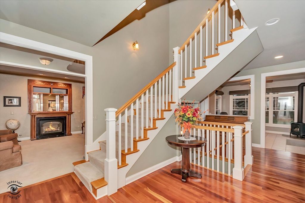 Your search ends here! This exquisite custom-built two-story home has everything you've been dreaming of. Located in a peaceful cup-de-sac within Suttondale subdivision, it's just steps from the top rated Grand Prairie Elementary and only a mile from downtown Historic Frankfort, with easy access to the OLD Plank Trail. Step inside to a grand entrance featuring beautiful cherry hardwood floors. The private dining room, complete with a mini bar, is perfect for entertaining. The inviting formal living room, highlighted by a cozy brick fireplace, sets the scene for special holidays or relaxing evenings. French doors lead to a spacious office and a bright sun porch that overlooks a large, professionally landscaped yard. The kitchen is a haven for gatherings, boasting stainless steel appliances and views of the expansive lot, and it's just steps away from the enormous family room. Upstairs, the primary suite features dual sinks, a soaking tub, a separate shower, and a huge walk in closet. The second floor also includes three additional well-sized bedrooms that share a full bathroom. And don't miss the fully finished basement, complete with a dedicated workout area and a spacious recreation room. Perfect for that dream theater room or extra bedrooms. With two separate entrances, it's ideal for entertaining or multigenerational living. The extra-large three-car garage features heating and a finished floor, plus convenient access to the basement and stairs leading up to an unfinished loft above the garage. This space can be transformed into a man cave or a home office, perfect for remote work. Your search is truly over-one look at this home and you'll know it's the one.