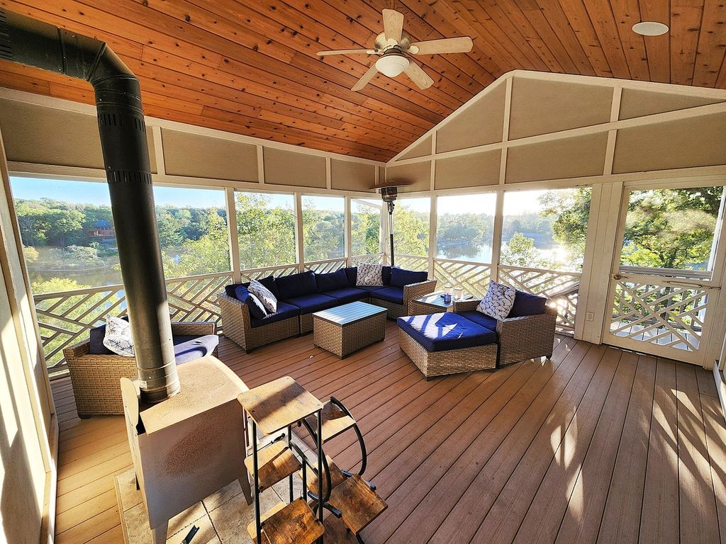 Beautiful Lakefront Home in Lost Lake Subdivision! Enjoy peaceful lake living in this gorgeous 4-bedroom, 3.5-bath home overlooking Lost Lake. With nearly 5,000 sq. ft. of finished space, this property offers an open layout, vaulted ceilings, and panoramic lake views from nearly every room. The gourmet kitchen features granite countertops, Viking appliances, wine cooler, and an oversized island-perfect for entertaining. The spacious great room boasts a dramatic stone fireplace and access to a sunroom and three-season porch with tranquil wooded views. The main-level primary suite offers a luxurious bath and walk-in closet. Finished walkout basement adds flexible living space, or would be ideal for hosting guests. Enjoy the outdoors overlooking the lake from the deck, or head down the new stairs leading to your private dock. Experience peaceful lake living surrounded by trees and wildlife-just minutes from town amenities.