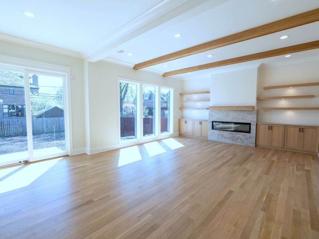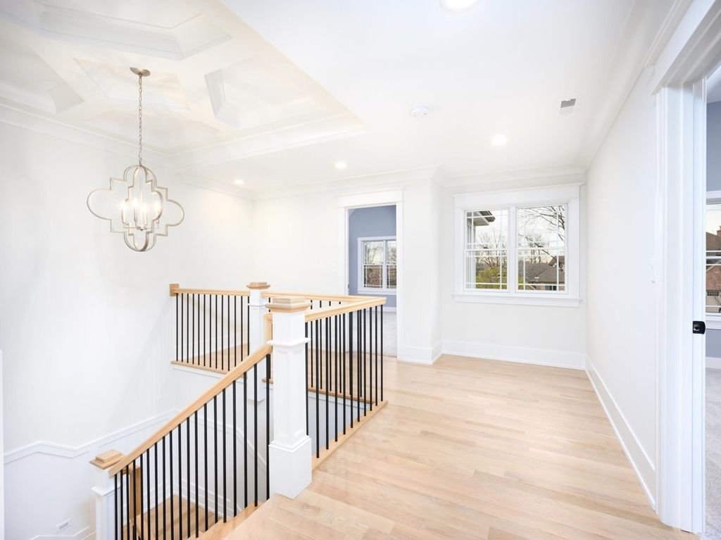 COMPLETE AND READY for occupancy. Lincoln School. 5 bedrooms, 4 and a half baths, 10 ft. ceilings, and white oak hardwood floors throughout main and second levels. Kitchen equipped with SUBZERO/WOLF, Butler's pantry with beverage fridge, plus pantry with custom wood shelving. Quartz countertops and backsplash, under-cabinet lighting, and a breakfast bar/island with seating. The family room features a modern fireplace flanked by custom cabinetry and floating shelves, complete with lighting and a beamed ceiling. Tiled mudroom with a large closet plus cubbies adjacent to the main level powder room. Upstairs, discover 4 bedrooms finished in white oak hardwoods. The primary suite boasts two closets with custom wood shelving, plus a linen closet. Spa-like bath with in-floor heating, soaking tub, double vanities, and a custom shower with 3 shower heads. The laundry room is conveniently located on the 2nd level with plenty of cabinetry and a sink. The lower level is where you'll find a bright, carpeted family room boasting 9 ft. ceilings with built-in surround sound speakers, and a wet bar with beverage fridge. 5th bedroom with a full bath, plus a dedicated exercise room with black rubber flooring separated from the family room by French doors. Three finished floors of quality craftsmanship and thoughtful details. (Photos are representative of prior builds.)