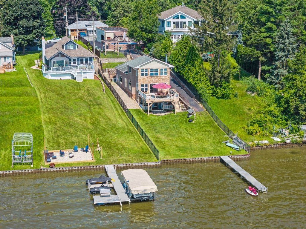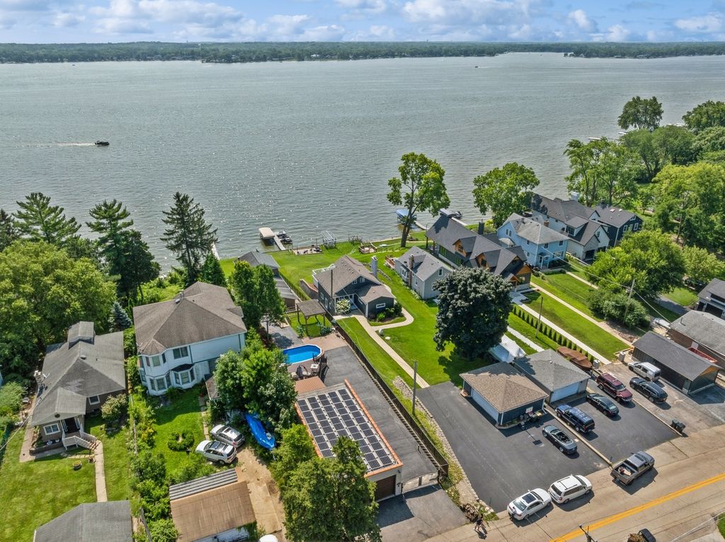 Welcome to 38635 N Drexel Boulevard, your lake front oasis! This home offers 4 bedrooms, 3 bathrooms, a massive yard, 2 decks, a pool and a garage large enough for all your vehicles, boat storage, and misc. toys. The elevated lot gets you your dream lake front property without having to worry about any flooding here! Inside the kitchen greets you with all stainless steel appliances including a Viking double oven and a Sub-Zero double wide refrigerator. In addition to your chefs kitchen, you'll have two bedrooms on the main floor and a mesmerizing living room that showcases panoramic lake views with a deck for additional entertaining. The primary bedroom overlooks those unbeatable lake views with windows galore and high ceilings. The finished walk out basement offers you the fourth bedroom, another living area and a patio with direct access to the backyard. This home also has hardwood flooring throughout the entire first floor, high end Anderson windows, solar energy to keep your electric bills nominal, a whole house back up generator, a second kitchen to entertain off the garage/pool area, an in-ground sprinkler system, and much more!