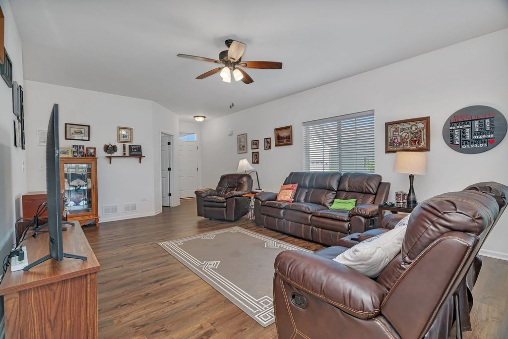 Experience modern elegance in this newer constructed Channahon home, where thoughtful design meets everyday comfort. Inside, two spacious bedrooms and three full baths showcasing so many upgrates, grainte in kitchen and all bathrooms, laminate wood flooring throughout the whole house, stainless steel appliances, can lighting for extra contemporary look. The open living and dining area invites seamless entertaining and relaxed family gatherings. A versatile flex room offers the perfect space for a home office, media lounge, or play area. The full basement includeds a completely finished 3rd full bathroom. Step outside to the covered back patio, where you can enjoy morning coffee or evening sunsets in any weather. From energy efficient windows, every detail reflects quality craftsmanship. Ideally situated in a friendly neighborhood just minutes from parks, toprated schools, shopping, and dining, this movein ready home is the perfect blend of style and functionality.