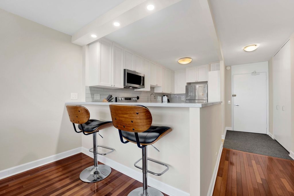 Enjoy breathtaking views from this 41st-floor One Bedroom, perched just below penthouse level in the heart of Old Town! The kitchen and hallway have been recently updated with new electrical & lighting, quartz countertops, hickory cabinets, and includes stainless steel appliances. The space also boasts real hardwood floors and abundant storage-including a professionally organized walk-in closet conveniently located across from the bathroom. James House, part of the highly sought-after Sandburg Village, offers 24/7 door staff, a rooftop sundeck, receiving room, basement storage, party room, bike room, and a fitness center (for an additional fee). The association also features two in-ground pools (one directly next to James House), plus tennis and pickleball courts (available for an additional fees), and discounted memberships to Old Town FFC. Pet-friendly (one dog and one cat or two cats, with weight restrictions), this home places you at the center of all Old Town has to offer-close to Second City, Zanies Comedy Club, North Avenue Beach, the Chicago History Museum, Red Orchid Theatre, and with excellent CTA access.