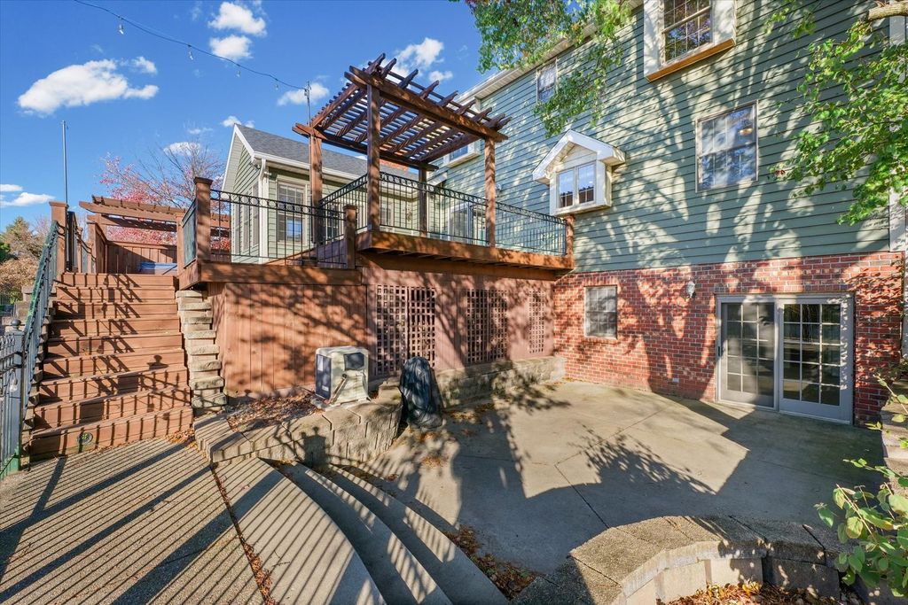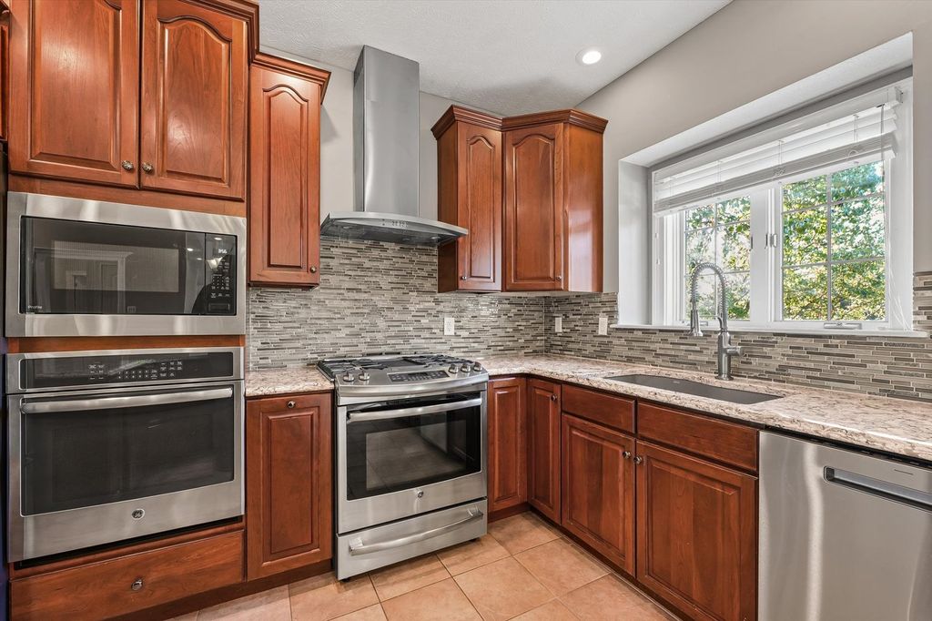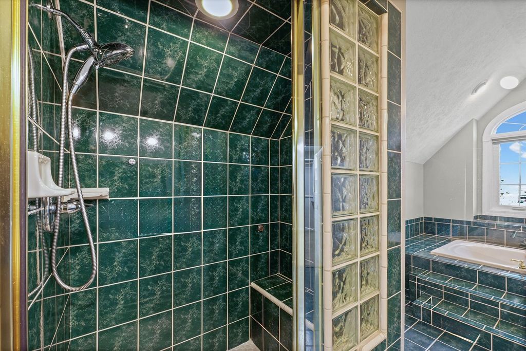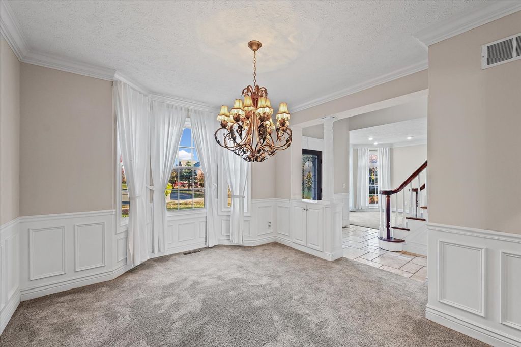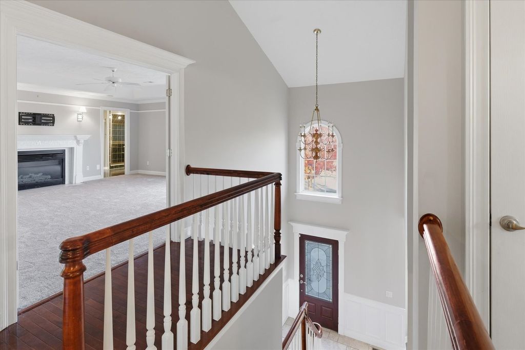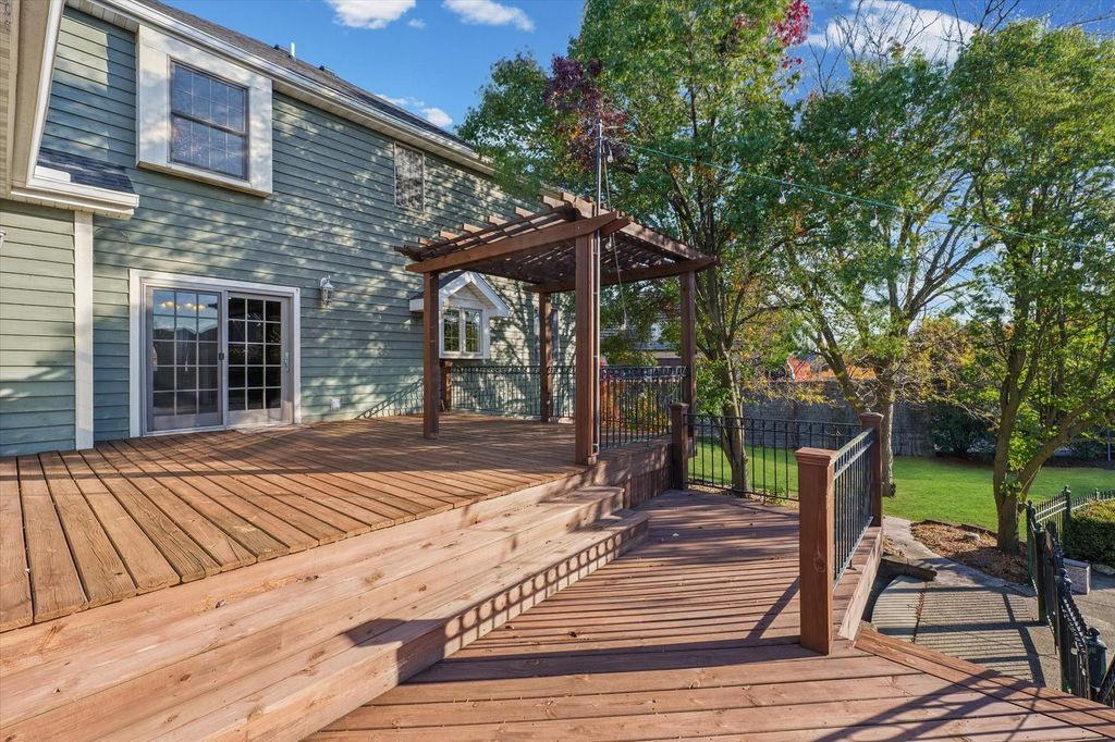 Welcome to 1 Windsong Way! An elegant, one-of-a-kind 5-bedroom, 4.5-bath walk-out Tudor perfectly situated on a peaceful cul-de-sac with private lake access. Resting on a half-acre lot with professional landscaping with an abundance of outdoor living space, this home offers resort-style living with a 24' x 48' in-ground pool, private hot tub area, and an expansive wraparound deck-ideal for entertaining and relaxation. Step inside to discover 9-foot ceilings, a formal dining room and living room, and a spacious eat-in kitchen featuring a large center island with seating, quartz countertops, a wet bar, and updated dishwasher and microwave (2024). The family room impresses with a vaulted ceiling, custom built-ins, and a cozy fireplace-perfect for winter nights. A sunlit four-seasons room with outdoor access provides a warm, inviting space year-round. The private office with custom-built-ins, conveniently located off the kitchen, offers a quiet space for work or study. Upstairs, the primary suite is a true retreat with its own fireplace, tray ceiling, and a spacious walk-in closet with built-ins, wall safe, and additional storage. The upper level also includes an en-suite bedroom and Jack-and-Jill bedrooms, all with new carpet (July 2025). The walk-out basement expands your living space with generous recreation areas and two large storage rooms with built-in shelving. New flooring was added in 2021. Additional features include first-floor laundry with custom cabinetry and shelving, three-car side-load garage with ample guest parking, new roof and pool heater (2023), new HVAC systems (2022), new water heater (2021), and irrigation system. This elegant and meticulously maintained home combines timeless Tudor charm with modern amenities, all in a premier location. Don't miss the chance to make this exceptional property your next home!