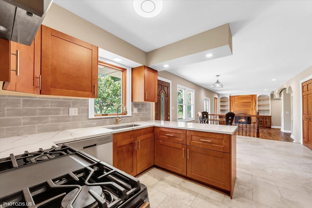 This home is embraced by a beautiful open backyard on almost 1 acre of peaceful land. It is located in Fox-Hills Estates section and adjacent by large homes, a great location near parks, golf clubs and 5 minutes' drive to shopping centers and major highways. It featuring 4 bedrooms and 4 full bathrooms, fully renovated kitchen with 3 car garage and plenty of storage closets in move-in condition. The first floor offers hardwood floors throughout the spacious living room and dining room, a cozy family room with fireplace, and an additional sun-filled great room. The kitchen has been fully renovated with new cabinets, countertop, dishwasher and oven/range with hood. A convenient laundry room with washer and dryer, full bathroom, and a welcoming foyer complete the main level. Upstairs you'll find a spacious master suite with a beautifully renovated bath, double sinks and shower, along with three additional bedrooms and another full bath. The large Partially finished basement provides excellent potential and already includes a full bath with tub and separate shower. Whole house was freshly painted inside and power washed outside. House come with whole house power generator and multiple 220V outlet for EV charging. In today's market, this is a rare opportunity for a family moving into a great neighborhood with great school.