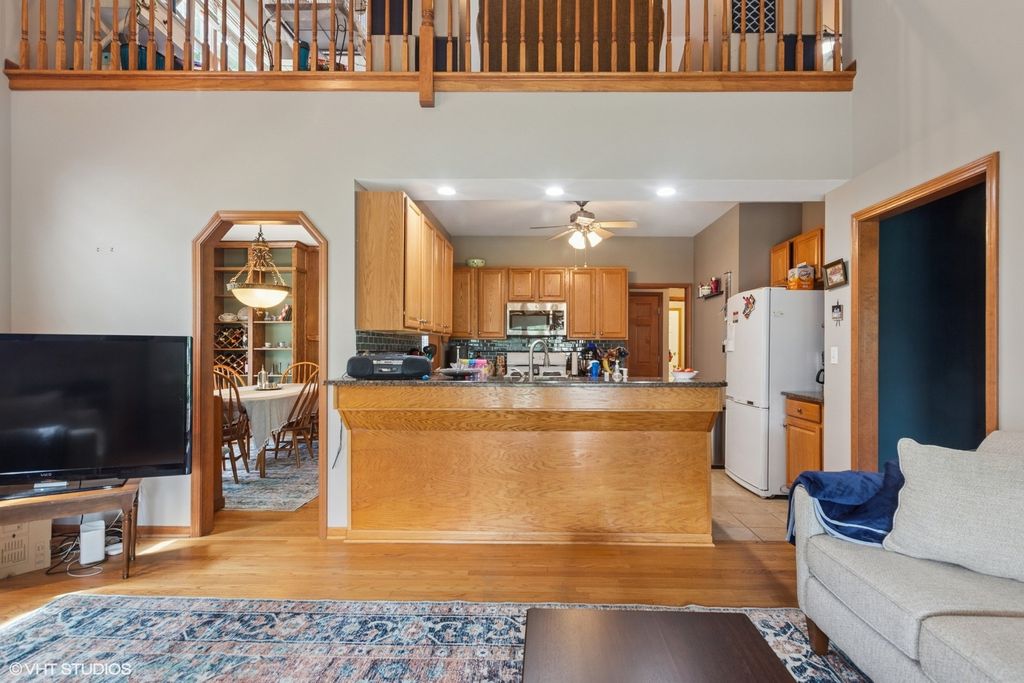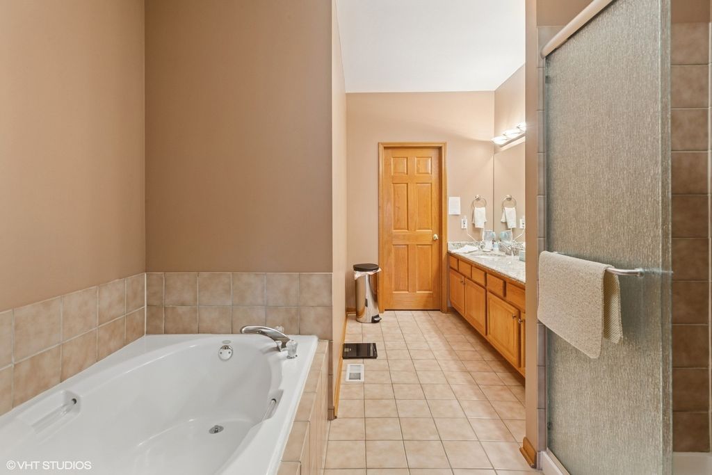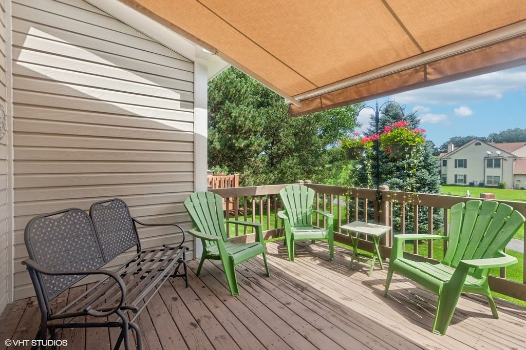 This well maintained townhome is nestled in the desirable Townes of Fox Chase subdivision with plank hardwood & ceramic flooring. Enjoy the convenience of a desirable & spacious 1ST FLOOR PRIMARY Bedroom Suite with double sinks, shower with grab-bars, soaking tub and fully organized shelving & hanging areas in the large walk-in closet. The Kitchen has granite countertops, custom cabinetry with ample space, tile backsplash, a breakfast bar & opens to a bright, cozy family room with a fireplace. Step outside to a private back deck (12'x13') with a natural gas grill connection and a motorized awning with a patio (12'x13') below, perfect for outdoor living. The Dining & Library/Living room area is another relaxing spot. The second floor greets you with a roomy loft overlooking the family room & is ideal for an office, reading, studying, enjoying music or playing games. Featuring a total of 3 bedrooms, 2.5 baths, Ceiling fans & can lighting throughout and a full, unfinished look-out basement, the home boasts nearly 2,300 square feet of living space. This lovely home offers a picturesque backdrop of a walking path and nearby water feature. Updates include: 2022 Roof, Windows & Gutters Replaced. 2020 Hot Water Heater and Toilets, 3X Reverse Osmosis Filter. 2019 Furnace & A/C Replaced (serviced every 6 mts). The Garage is organized with storge racks & hooks. The Townes of Fox Chase community is ideally situated on the East side of St. Charles with D303 schools, parks, trails, and shopping. Move-in ready, this home awaits your approval for townhome living at its finest!