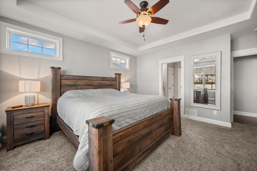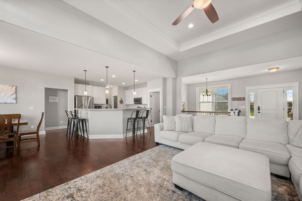 This timeless beauty showcases top-notch detail and is nothing short of spectacular! An open concept designed ranch features a split bedroom arrangement. This model-like home offers a full lookout basement and is nestled on a .39-acre oversize park-like lot in the custom Hickory Terrace community. The inviting covered porch and tapered stone crafted columns welcome you into this lovely home, showcasing a sun-filled open staircase foyer with wrought-iron spindles and complementing newel posts. Scraped hardwood flooring continues into the "breathtaking" Living room, presenting a towering 13-foot crowned step-up ceiling, an attractive ceiling-light fixture, two Craftsman-style transom windows side-by-side, the floor-to-ceiling stone gas log-lit fireplace, and a classic dark navy accent wall... a favorite gathering room! A chef's delight kitchen comes equipped with custom 42" white cabinetry and crown molding, a triangular tiered granite countertop, and glass-seeded light pendants. High-end stainless-steel appliances, an 8' x 5' walk-in pantry with wood shelving, and a dining area lit by a chic light fixture complete this exquisite kitchen space. There is a convenient mudroom which offers wall-to-wall custom cabinetry, including utility closets and pullout drawers, and a nearby coat closet. The laundry room has a LG washer and dryer, a laundry sink, a hanging rack, and upper cabinets. The owners' bedroom suite hosts a 9-foot step-up ceiling, Craftsman-style transom windows, a walk-in closet, and a glamorous spa-like bathroom! Granite tops with white undermount sinks, white vanities, a linen closet, oiled bronze fixtures, and eye-catching chandeliers add a dazzling appeal. A spacious tile surround shower offers a shower head and hand-held sprayer, and a built-in niche. The pocket door slides open into a private toilet room. The other two bedrooms are split from the primary bedroom and also offer ceiling-light fans and window blinds. A soft gray color scheme is in bedroom #2, and a pretty accent wall with a pastel color scheme completes bedroom #3. A shared full bath introduces a comfort height white vanity, granite tops, an under-mount sink, a tub/shower with tile surround, a cream and gray color scheme, oiled bronze fixtures, and ceramic tiled flooring. Constructed and professionally designed in 2019 with premier trim carpentry, white paneled doors, windows topped with intricately detailed moldings, crown moldings, lofty ceilings, oiled rubbed bronze hardware, rounded drywall corners, handscraped hardwood flooring, abundant recessed lighting, and a harmonious color scheme, all together create a beautiful feel-good interior vibe. The full basement is constructed with a deep 9-foot foundation, 3-lookout windows, storage shelving, and full bath rough-in plumbing. There is a 3-car garage with a service door. All appliances, a Nest thermostat, Metronet fiber optic services to home, a water softener, a Schlage front door WiFi encode entry lock system, Gold's Gym XRS50 in the basement, and an underground invisible outdoor fence are included! "Imagine your life here at 1435 Beach Lane!" LOVE your new HOME and where you LIVE!