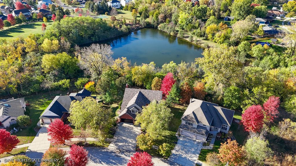 The One You've Been Waiting For! Refreshed on the inside and the outside, it's like a totally different home with all the modern clean touches you have been waiting for! Discover this beautifully updated Gallagher & Henry-built 2-story home offering space, style, and serenity in one of the area's most desirable locations. With lush trees and a peaceful pond behind the property, you'll enjoy a sense of privacy and nature rarely found in a neighborhood setting. Step inside to a bright and welcoming two-story foyer with a graceful staircase set off to the side and open balcony leading to four spacious bedrooms and 2 full bathrooms. The primary suite is a true retreat, featuring vaulted and beamed ceilings a sitting area, walk-in closet, and a luxurious bath with double sinks, a jetted tub, and separate shower. The main level boasts an open-concept layout perfect for family life and entertaining. A large formal living and dining area ( or flex area's) flows into the modern kitchen with refreshed white cabinetry, unique flooring and backsplash, granite counters, stainless steel appliances, and a breakfast bar. The adjacent dinette ( plenty of space to have an expanded table) opens to a two-story deck ( upper level is maintenance free decking and black iron railings) -ideal for morning coffee, family gatherings, or quiet evenings enjoying the wooded and pond views. Relax in the cozy family room featuring a beautifully updated modern black fireplace with a 100-year-old reclaimed wood mantle-truly a statement piece! A main floor office or den adds flexibility for remote work or study. The finished walk-out basement offers even more living space, including a summer kitchen with large counterspace/breakfast bar area, recreation area, full bath, and a 5th bedroom-perfect for related living, out of town guests, or an in-law suite. Throughout the home, you'll find fresh modern updates, including all newly painted white doors, trim, and windows, freshly painted kitchen and powder room cabinetry, and a new roof. Exterior has freshened up landscaping, newly painted garage and front door for a modern bold statement! Beautiful hardwood floors run throughout the first and second floors, adding warmth and continuity to the home's modern charm. This home truly has it all - location, beauty, space, and updates - ready for you to move right in and start making memories.