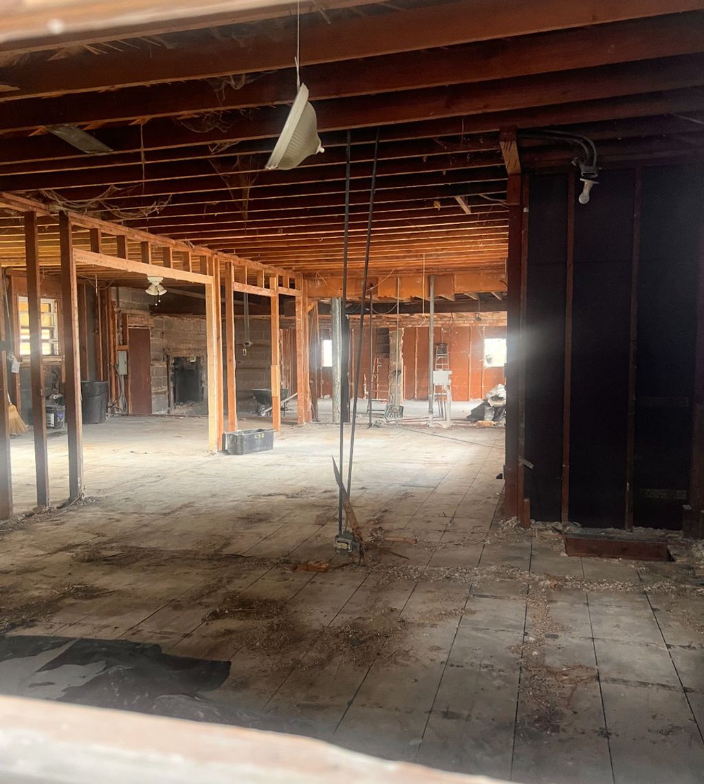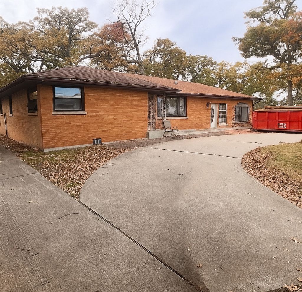 Spacious Brick Ranch Ready for Renovation! Bring your vision to this 4-bedroom, 2-bath, nearly 2,000 sq ft brick ranch sitting on a wide circular drive in a quiet residential area surrounded by mature trees. The home has already been gutted to the studs, offering a blank canvas for your next project. The open layout and solid structure make it ideal for a full custom buildout - reimagine the space with modern finishes, an open-concept kitchen, or a large primary suite. Roof and exterior brick are in good shape, and a large red dumpster is already onsite to jump-start construction cleanup. Perfect for investors, rehabbers, or buyers looking to design their dream home from the ground up. Conveniently located near shopping, parks, and schools. Sold as-is.