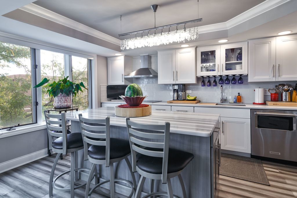 Welcome to 1389 Perry St. #303 - a rare, sun-filled corner condo in the heart of vibrant downtown Des Plaines! With three exposures (north, east, and south), this residence is bathed in natural light throughout the day. This spacious home offers 3 bedrooms and 3 full baths (two primary bedrooms), an ideal layout for those seeking privacy or multi-generational living. The inviting eat-in kitchen with island, is perfect for both daily living and entertaining (updated with Studio 41 cabinetry). Expansive windows frame every room, while the dedicated laundry/utility room with washer, dryer, and sink adds extra convenience. Enjoy the ease of a luxury elevator building with not one, but two parking spaces-a heated garage spot plus an additional exterior space. Step outside and experience the best of Des Plaines-just moments to the Metra train, shops, dining, entertainment, parks, and the Des Plaines Theatre. Whether you're commuting or simply enjoying all that downtown has to offer, this location can't be beat. Bright, spacious, and perfectly located-this is a home that truly checks all the boxes.