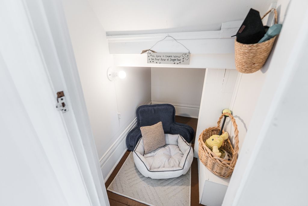 Step into this stunning reimagined Victorian-style home, featuring a distinctive Mansard/Grambrel dormer roof and a thoughtful blend of timeless charm and modern comfort. This beautifully updated 2-bedroom, 1.5-bath home welcomes you with a spacious living and dining area boasting 9-foot ceilings-perfect for entertaining or relaxing in style. The brand-new kitchen is sure to impress, showcasing stainless steel appliances, quartz countertops, and sleek cabinetry. There's even a cozy nook ideal for your furry friends or extra storage. Upstairs, a generous landing offers a versatile space that's perfect for a home office or reading area. Both bedrooms are filled with natural light streaming through brand-new windows, creating a warm and inviting atmosphere. Enjoy peace of mind knowing that nearly every major system has been upgraded, including a new roof, fascia, gutters, windows, HVAC, electrical, plumbing, driveway, kitchen, flooring, and bathrooms. This home truly combines historic character with modern efficiency-move-in ready and waiting for you to make it your own.