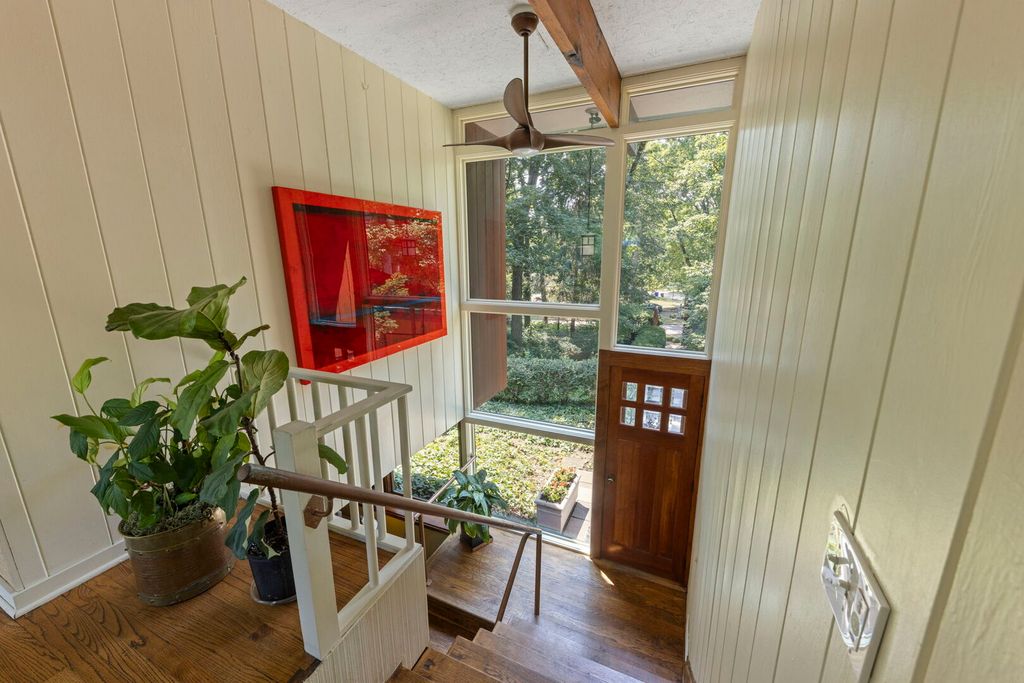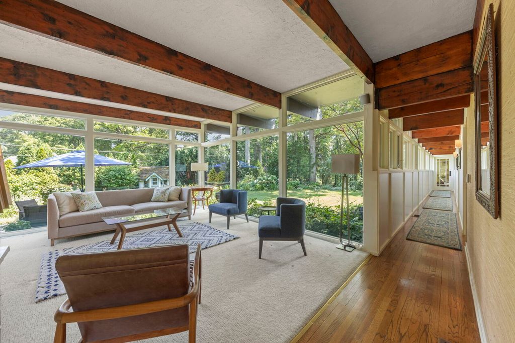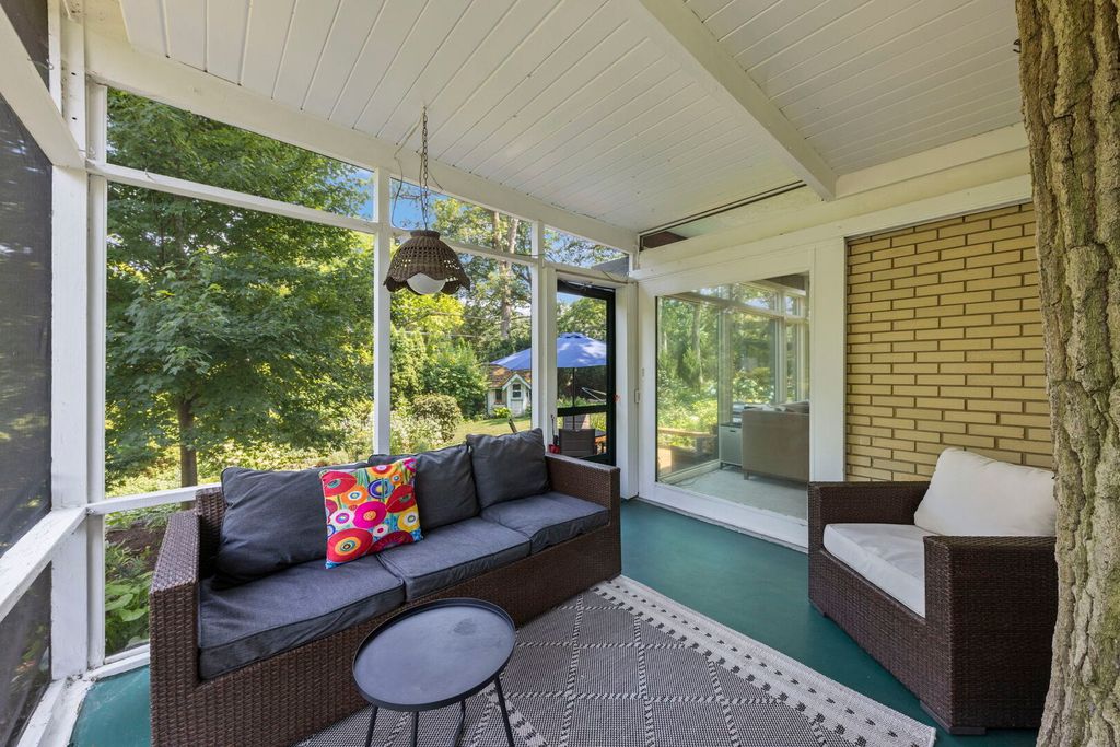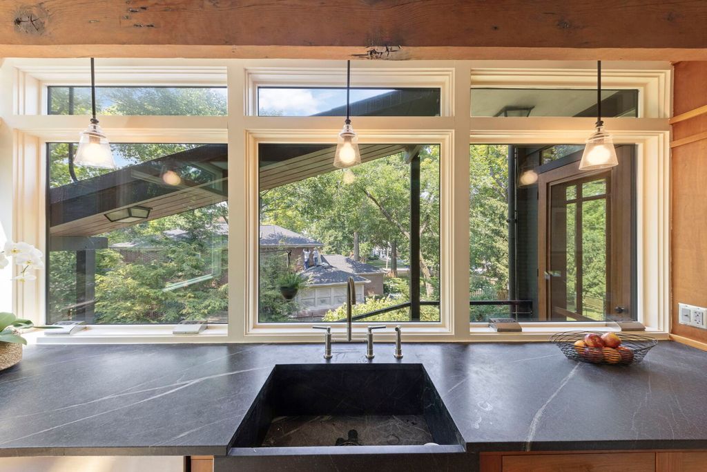 C. 1952, Mid-Century Modern, 4-bedroom hilltop ranch home in the fabulous Midway Park area of Glen Ellyn! Perched on a 120x179 foot lot, this architectural beauty seems to materialize from its wooded surroundings. Nature and function come together with seasonal views from the many windows throughout. The tranquil living room with masonry and copper fireplace boasts perpendicular walls of windows overlooking the rear deck and back yard with access through the adjacent screen porch. Custom built by Hummingbird Designs (2010) the light filled kitchen in the craftsman style features the sink wall of windows, natural cherry cabinetry, soapstone counters, stainless appliances and sustainable cork flooring. The dining room, open to the kitchen has access to the screened porch, side deck, gardens and garage. Primary bedroom includes newer bath (2016) with custom cabinetry, marble tiles and soapstone counters. 3 additional bedrooms and updated hall bath included on the main floor, all with views of the outdoors. Ribbon windows overlooking the backyard, line the hallway to the bedrooms. With "post and beam" construction, exterior walls are the only load bearing. The cozy lower level, also with outdoor views includes family room with built-in bar cabinet and laundry room. Both naturalized and manicured, the grounds are stunning in every season with water feature in the front, two entertainment decks, gardening shed or playhouse, and an assortment of appropriate garden ornamentation. Paver brick walkways and driveway lead to the the 2.5 car garage "complex' which includes a generous storage area and EV charging station plus storage shed and potting area built into the the side of the building. Updates include: Modified Bitumen Roof(2001) Washer/Dryer and Architectural Staircase to the Kitchen(2025) DW, Fridge, HW Heater, 22KW House Generator and EV Charger(2020) Range(2017) Anderson Window Replacements, HVAC and Rubber Garage Roof(2016). Walking distance to the Metra train station, Lake Ellyn, Restaurants, Shops, IL Prairie Path, Glenbard West HS and more from this sought after location. Within the Ben Franklin Elementary boundaries.