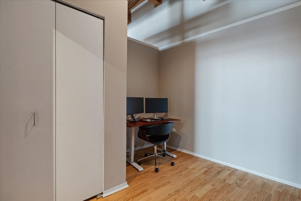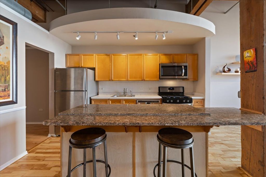 Welcome home to this sophisticated Brick and Timber 2 bed / 2 bath Loft in the beating heart of the Chicago South Loop! Fixed in the highly sought-after Bicycle Station Lofts, where historic charm meets modern comfort -- This unit offers Soaring 12-foot ceilings, exposed brick and timber beams, and dramatic floor-to-ceiling windows that fill the open-concept living space with incredible natural light. The inviting living room features a cozy fireplace and direct access to a private balcony - perfect for morning coffee or evening relaxation. The updated kitchen is ideal for entertaining, showcasing stainless steel appliances, an enlarged granite island, and plenty of storage space. The spacious primary suite includes an organized walk-in closet, a lofted storage area, and an ensuite bath with a tub/shower combination. The versatile second bedroom is perfect for guests or a dedicated home office, with a nearby full bath featuring a walk-in shower. Recent upgrades provide peace of mind, including a new furnace and A/C (2021), new washer/dryer (2023), and freshly refinished hardwood floors (September 2025). The carpeted areas have also been replaced with engineered hardwood (September 2025) for a seamless, elevated look. Enjoy convenient in-unit laundry, ample storage, and building amenities such as an elevator, fitness room, storage lockers, and bike storage. Affordable assessments include: Common Insurance, Exterior Maintenance, Lawn Care, Scavenger, Snow Removal, Water, Fitness Center, Storage and Bike Storage. For convenience, this unit is located near Soldier Field, Burnham Harbor, Museum Campus, parks, grocery stores, Roosevelt Collection Shops, and CTA Green/Red/Orange lines, this loft offers the best of South Loop living with unbeatable access to everything Chicago has to offer. Schedule your tour today!