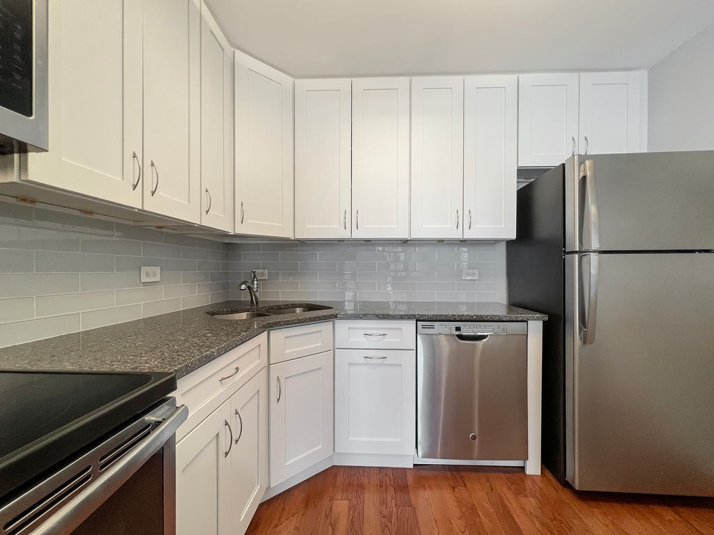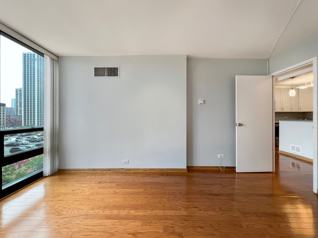 Welcome to the perfect one-bedroom condo located in Chicago's Old Town neighborhood! This unit features east-facing floor-to-ceiling windows, providing outstanding natural light, and a combined living and dining areas. The bedroom can accommodate a king-size bed with room for additional furniture and a walk-in closet. The kitchen has been updated and boasts a modern feel with stainless steel appliances and a subway-tiled backsplash. You'll love living in this pet-friendly (30lbs limit) high-rise with a 24-hour door staff and on-site management with amenities that include an outdoor swimming pool, gym, party room, package receiving, and a modern card-operated laundry room. You can easily walk to the lakefront, park, restaurants, and bus/train transportation. The monthly assessments include heat, air conditioning, cable, Internet, water, sewer, and trash. Valet garage parking, storage bins, and bike parking can be rented as needed. Investors are welcome.