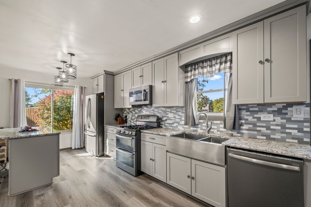 Welcome home to this beautifully updated 3-bedroom, 1.5-bath gem featuring a brand-new kitchen remodel with stylish cabinetry, sleek countertops, and stainless steel appliances. Enjoy peace of mind with a new roof (2023), furnace (2023), fenced-in yard, and fresh finishes throughout! This move-in ready home offers a comfortable layout perfect for everyday living and entertaining. The spacious living area flows seamlessly into the dining space and kitchen, while the private backyard is ideal for relaxing or hosting gatherings. Located in highly rated Lincoln Way school district and close to parks, shopping, and dining. New railing for the staircase to be professionally installed 11/18. Don't miss your chance to own this beautifully updated home! Schedule your showing today!